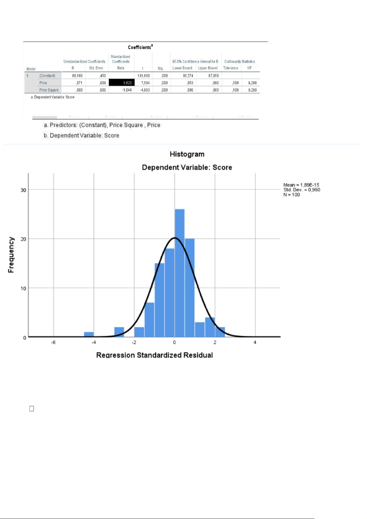 Score = b0 + b1. Price + b2. Price Square