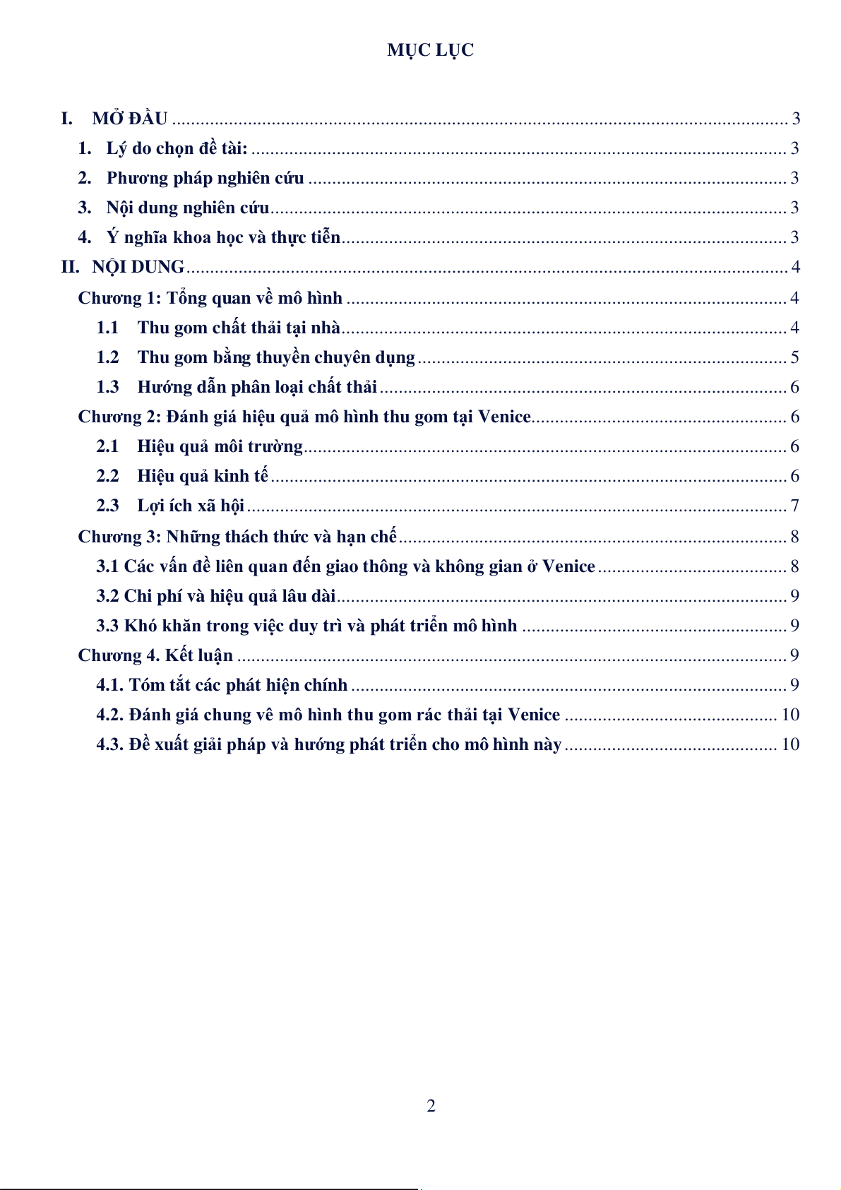 4.2. Đánh giá chung vê mô hình thu gom rác thải tại Venice . . . . . . . . . . . . . . . . . . . . . . . 10