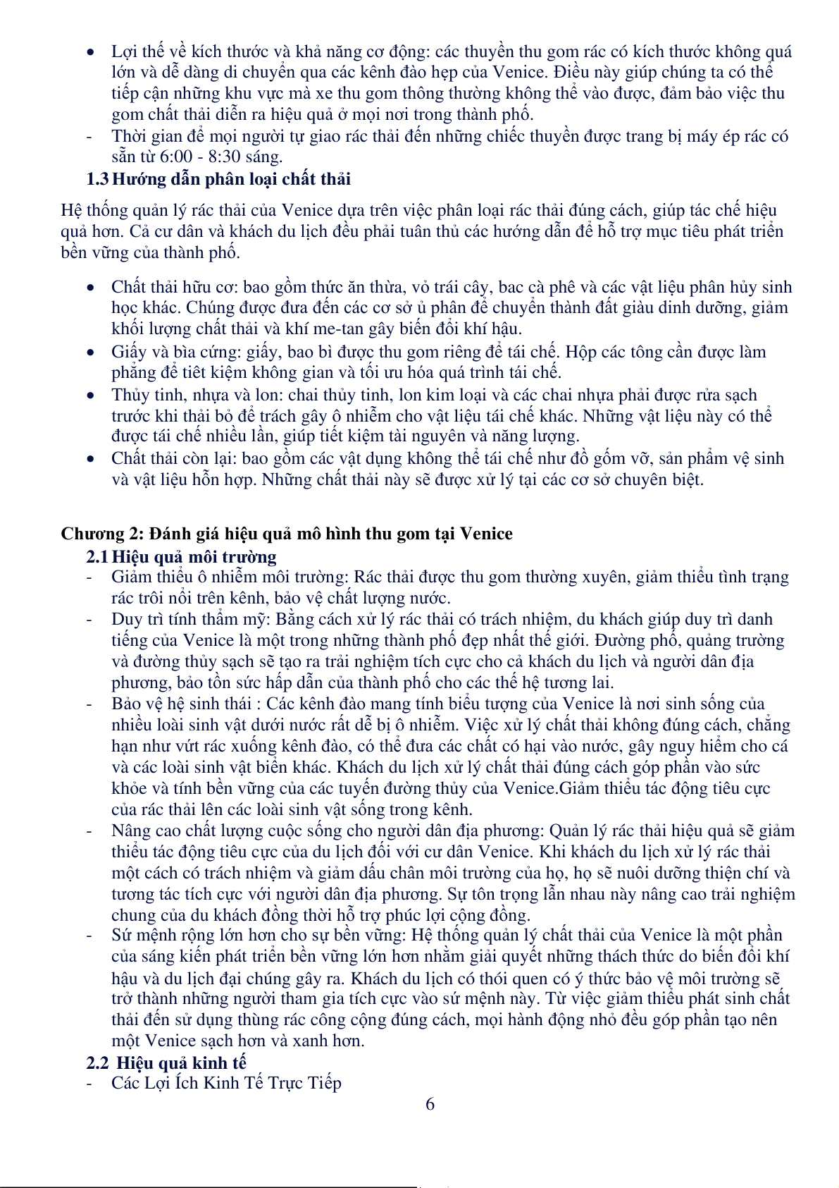 Chương 2: Đánh giá hiệu quả mô hình thu gom tại Venice. . . . . . . . . . . . . . . . . . . . . . . . . . . 6