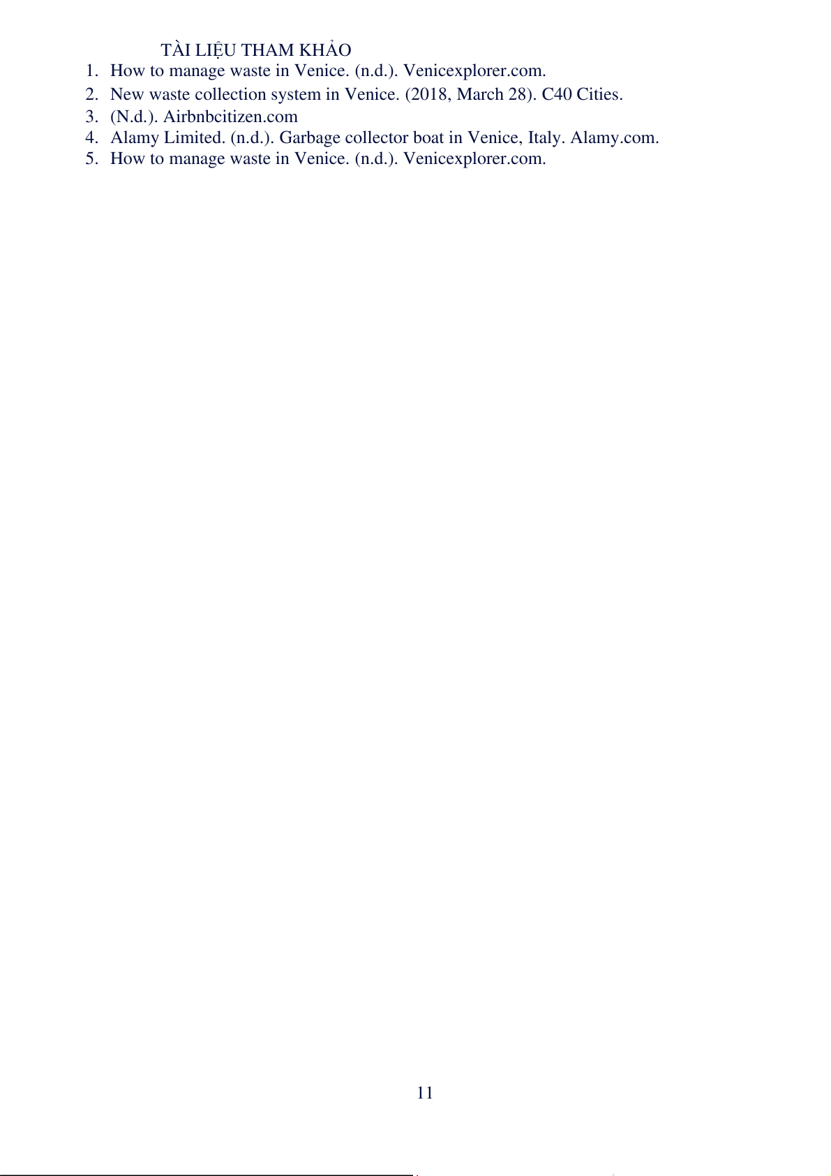 5. How to manage waste in Venice. (n.d.). Venicexplorer.com. 11