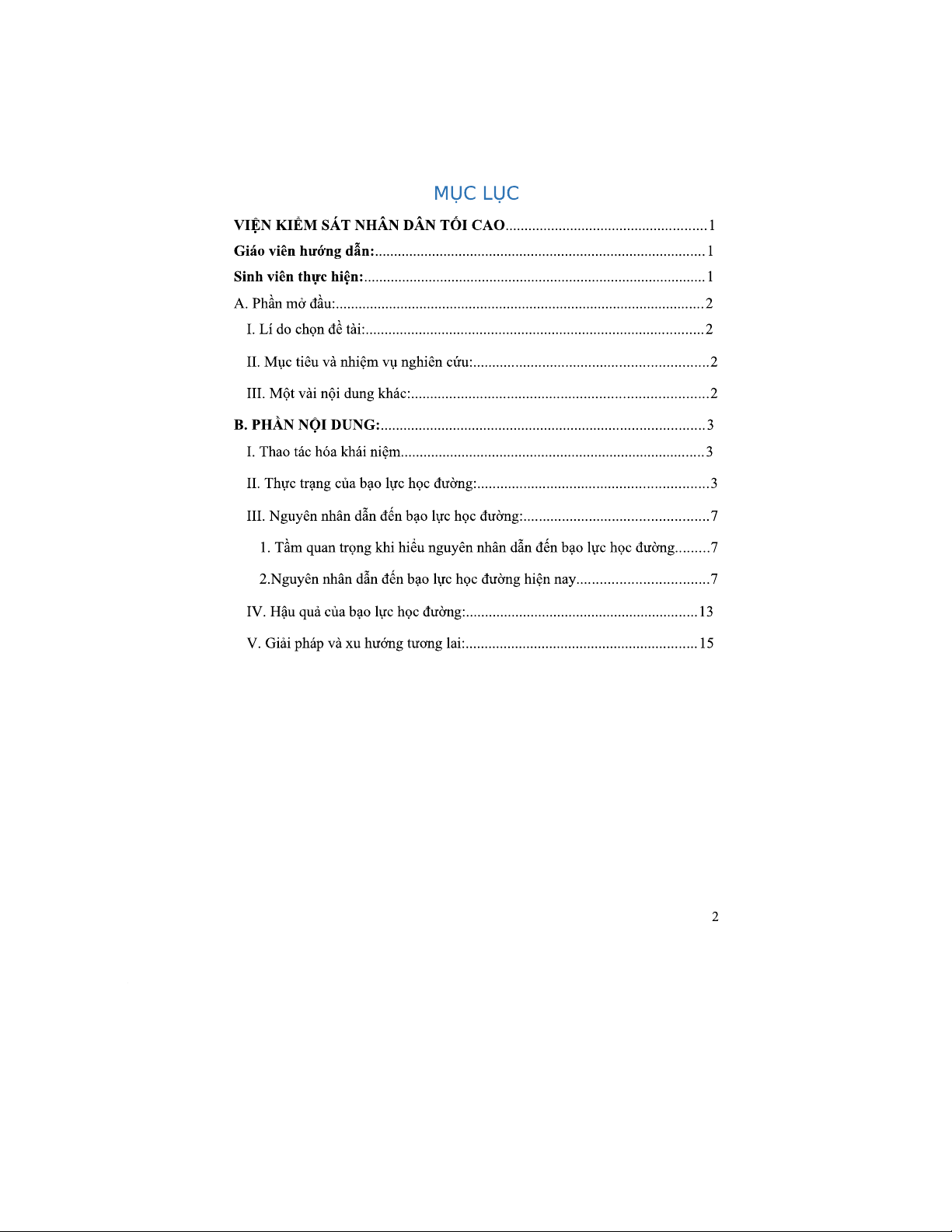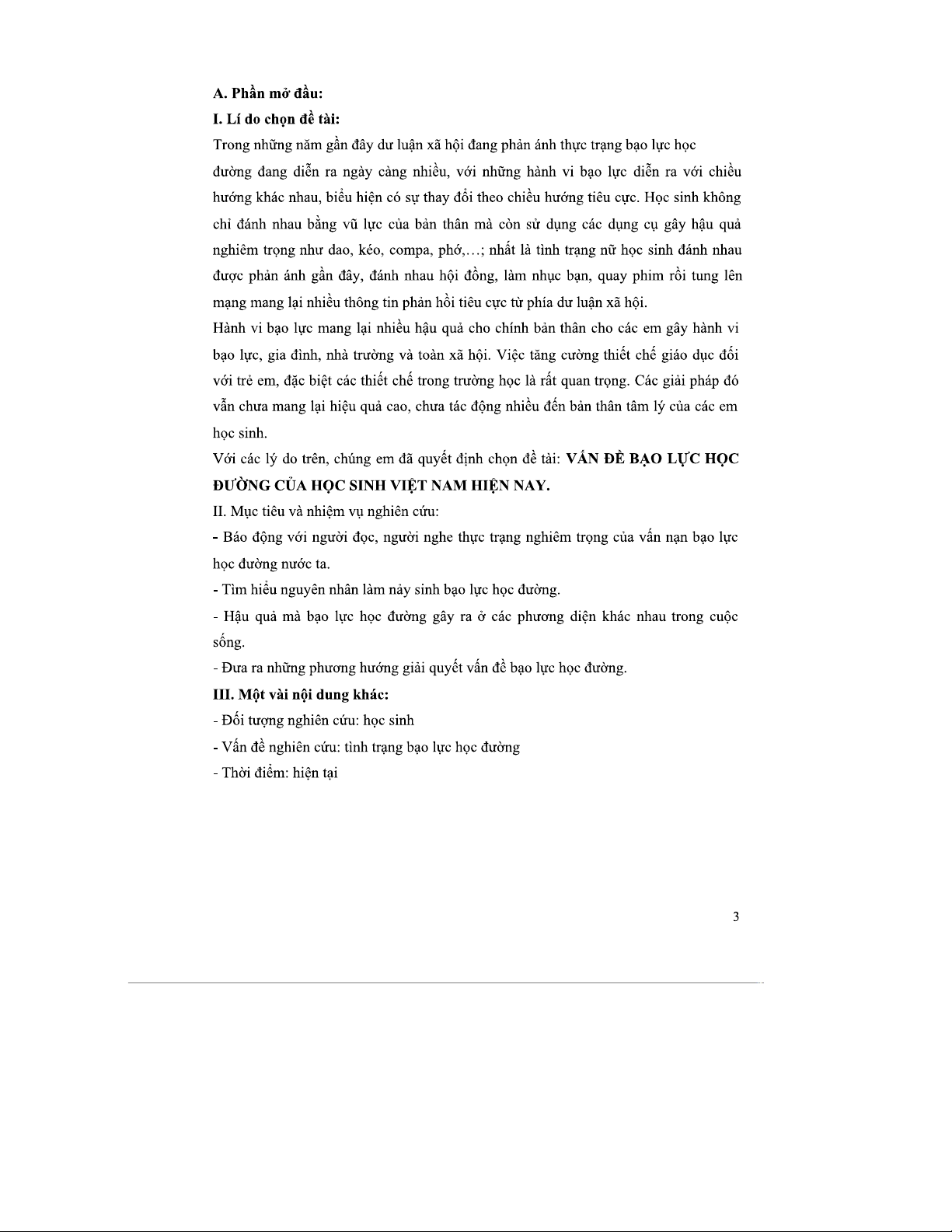 Bài Tiểu Luận K11D: Hiện Trạng & Nguyên Nhân Bạo Lực Học Đường Việt Nam