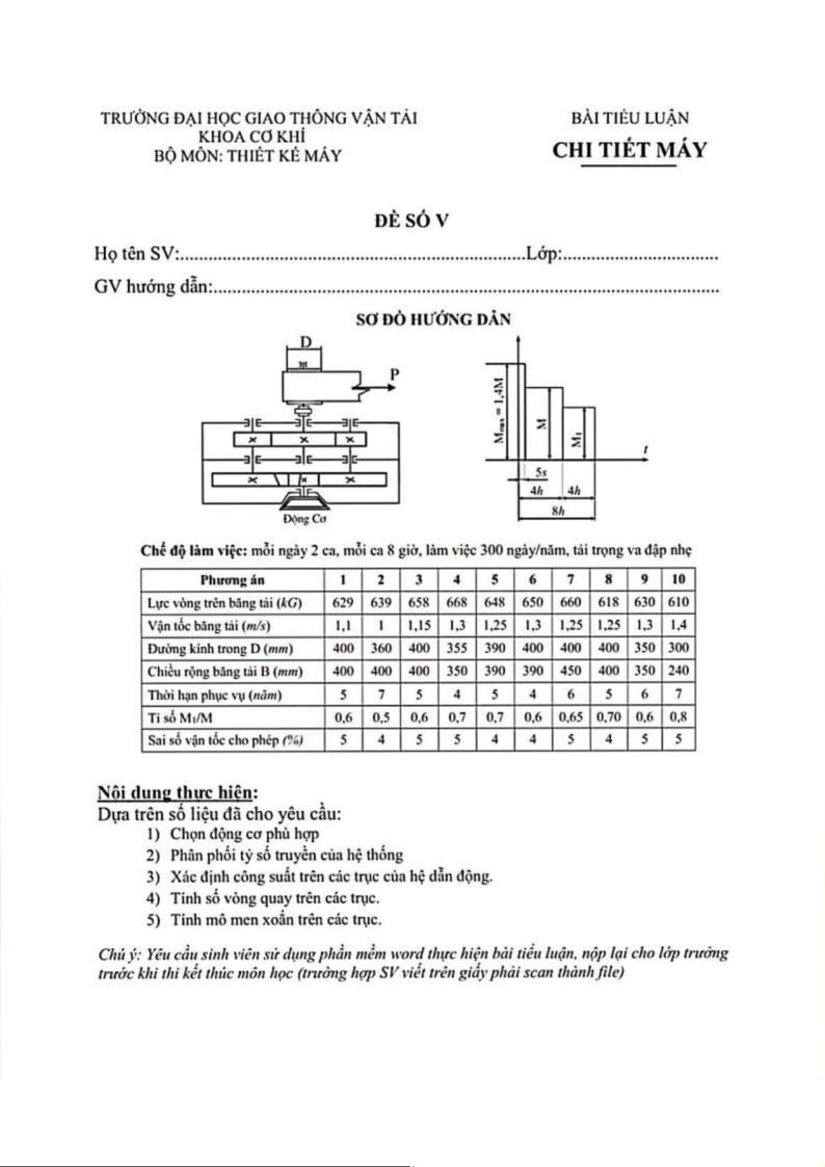 BÀI TIỂU LUẬN KHOA CƠ KHÍ: THIẾT KẾ MÁY CHI TIẾT MÁY DÈ SÓ V HQ. Môn Chi tiết máy (GTVT) | Trường Đại học Giao thông Vận tải.
