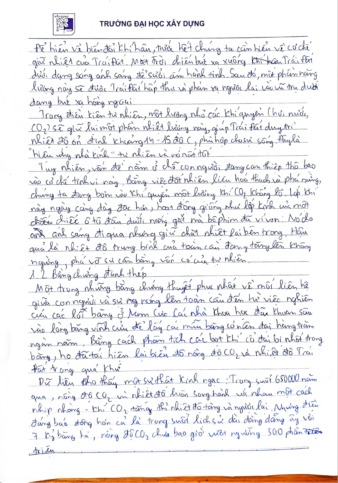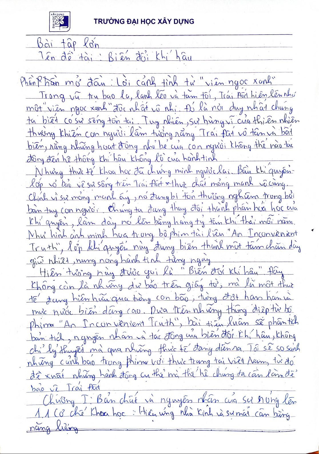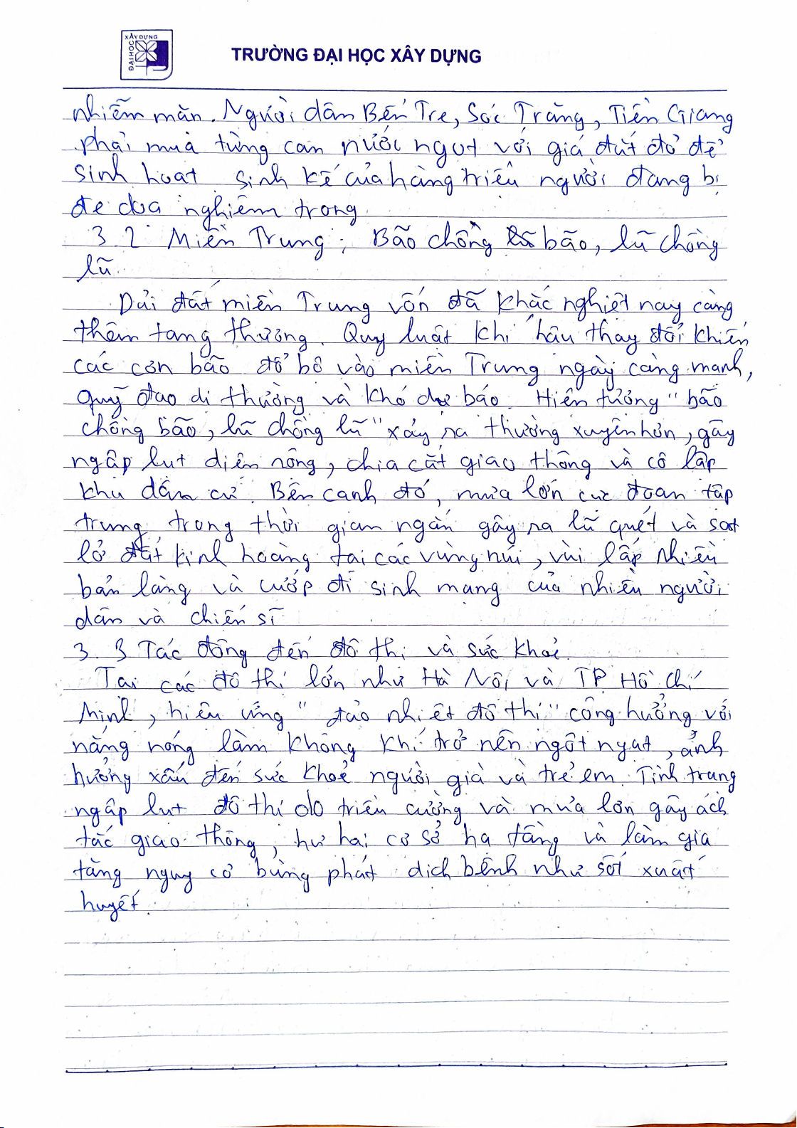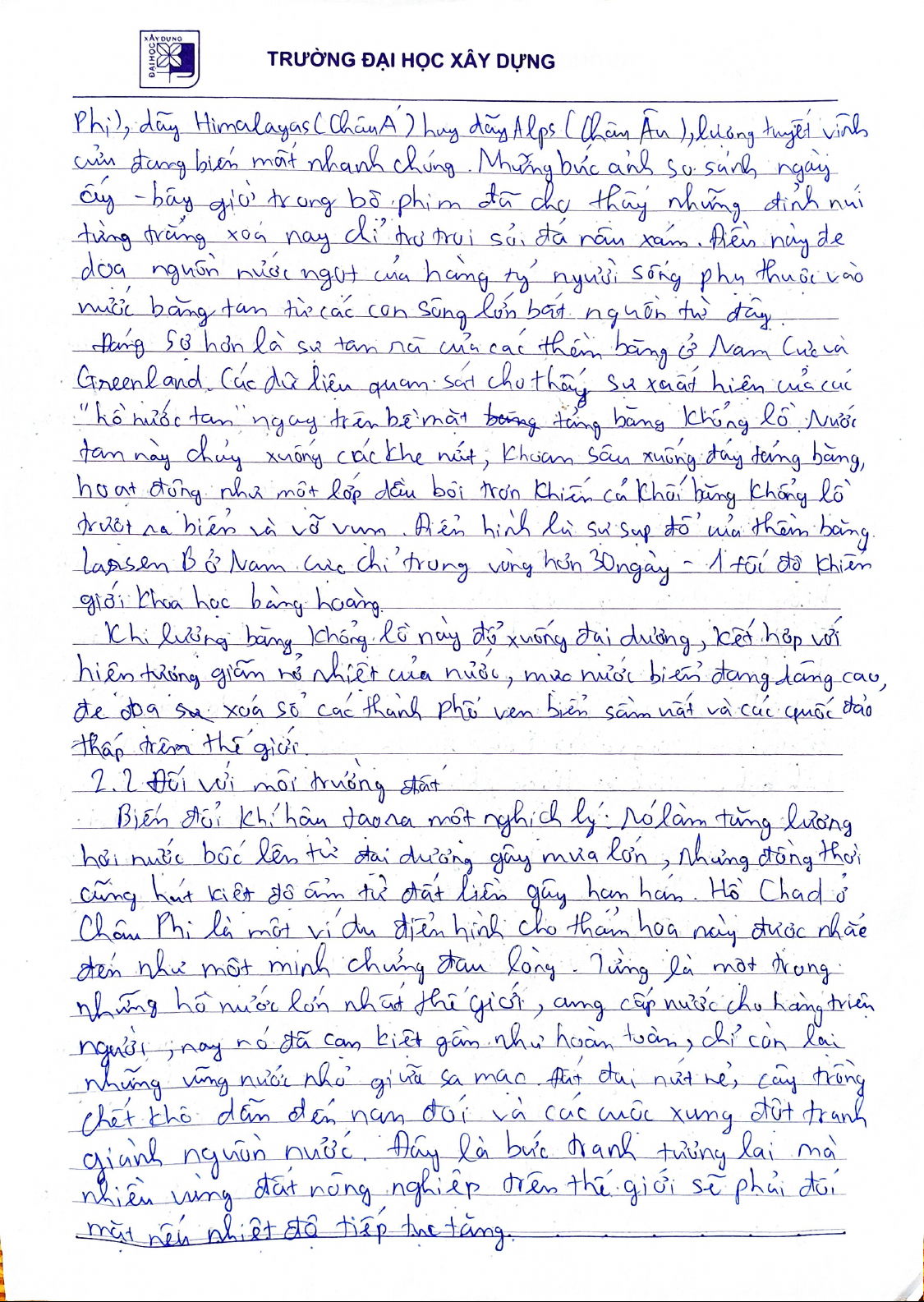 Bài tiểu luận về Biến đổi khí hậu | Trường Đại học Xây Dựng Hà Nội