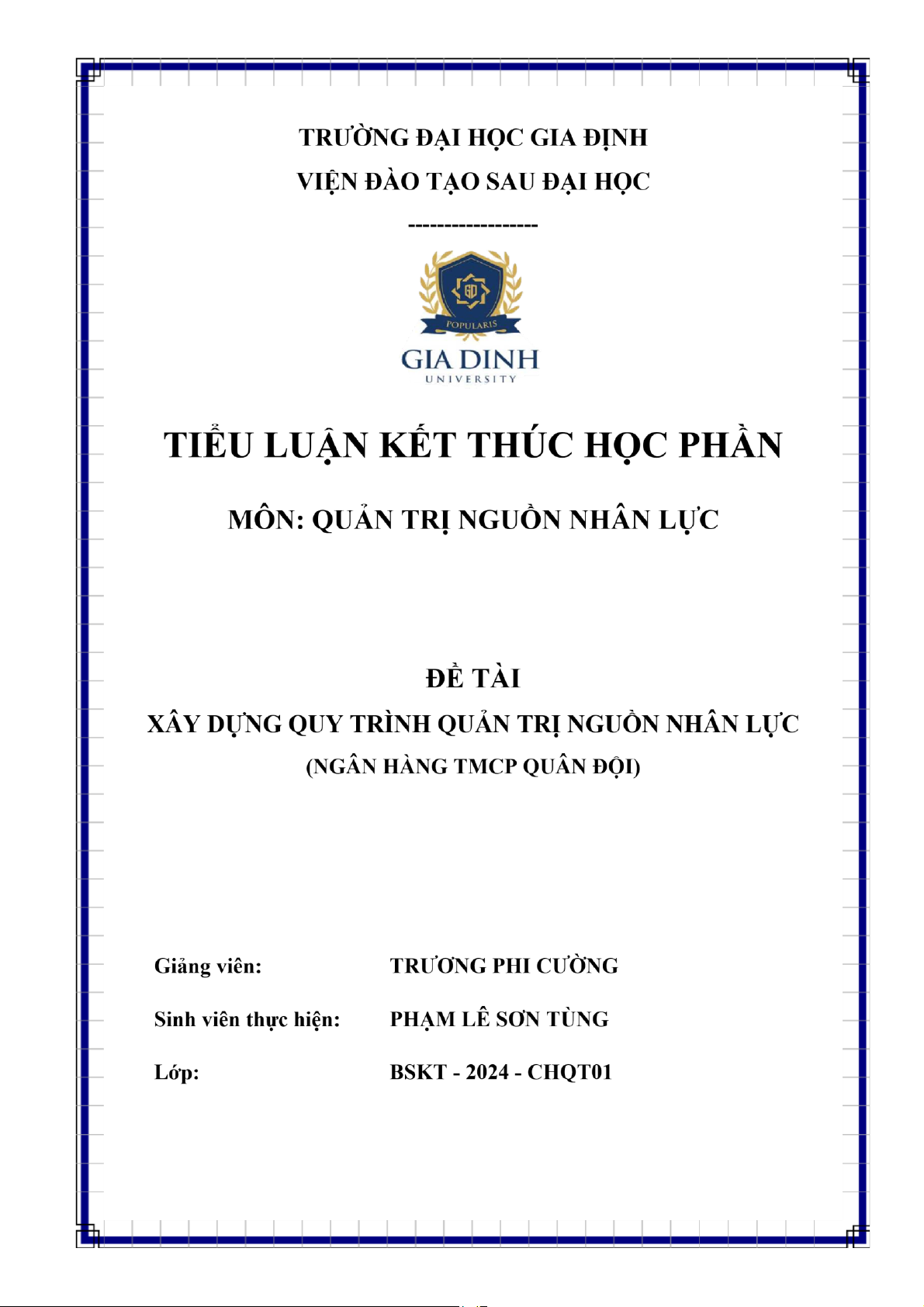 Sinh viên thực hiện: PHẠM LÊ SƠN TÙNG Lớp: BSKT - 2024 - CHQT01