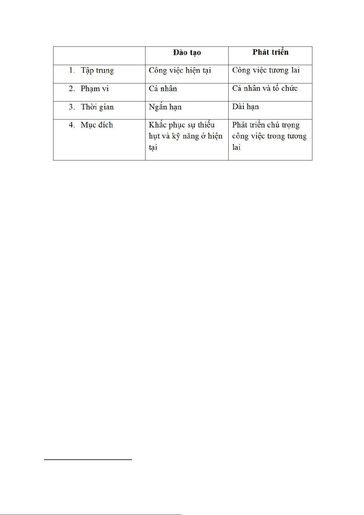 Bảng 1.1. Bảng phân biệt giữa đào tạo và phát triển nguồn nhân lực ..................................... 8