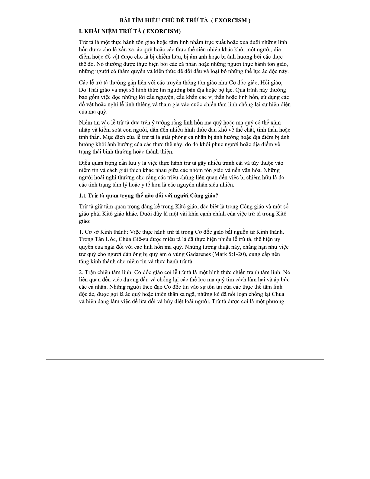 BÀI TÌM HIỂU VỀ TRỪ TÀ TRONG TÔN GIÁO VÀ VĂN HÓA