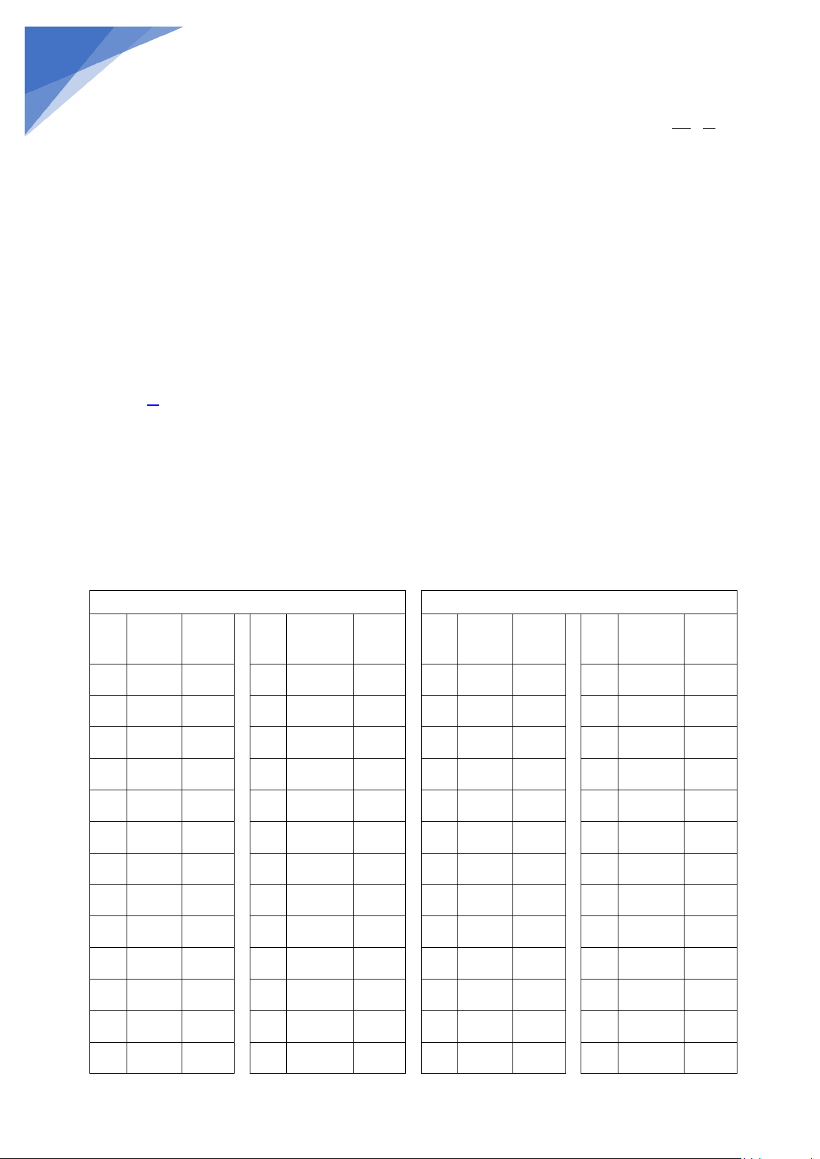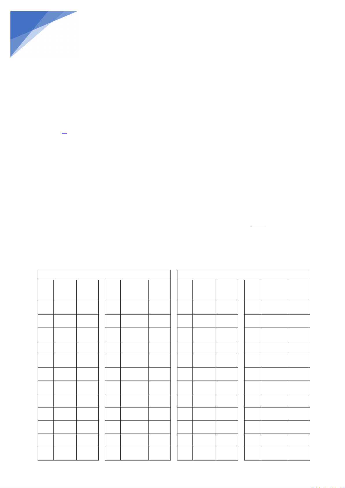 Bài 42. Số lượng khách hàng đến một cửa hàng mỗi ngày trong quý IV của năm 2020 được ghi lại ở bảng sau: Số khách hàng 0 −10 11− 20 21 − 30 31 − 40 41 − 50 51 − 60 Số ngày 4 6 27 28 17 10