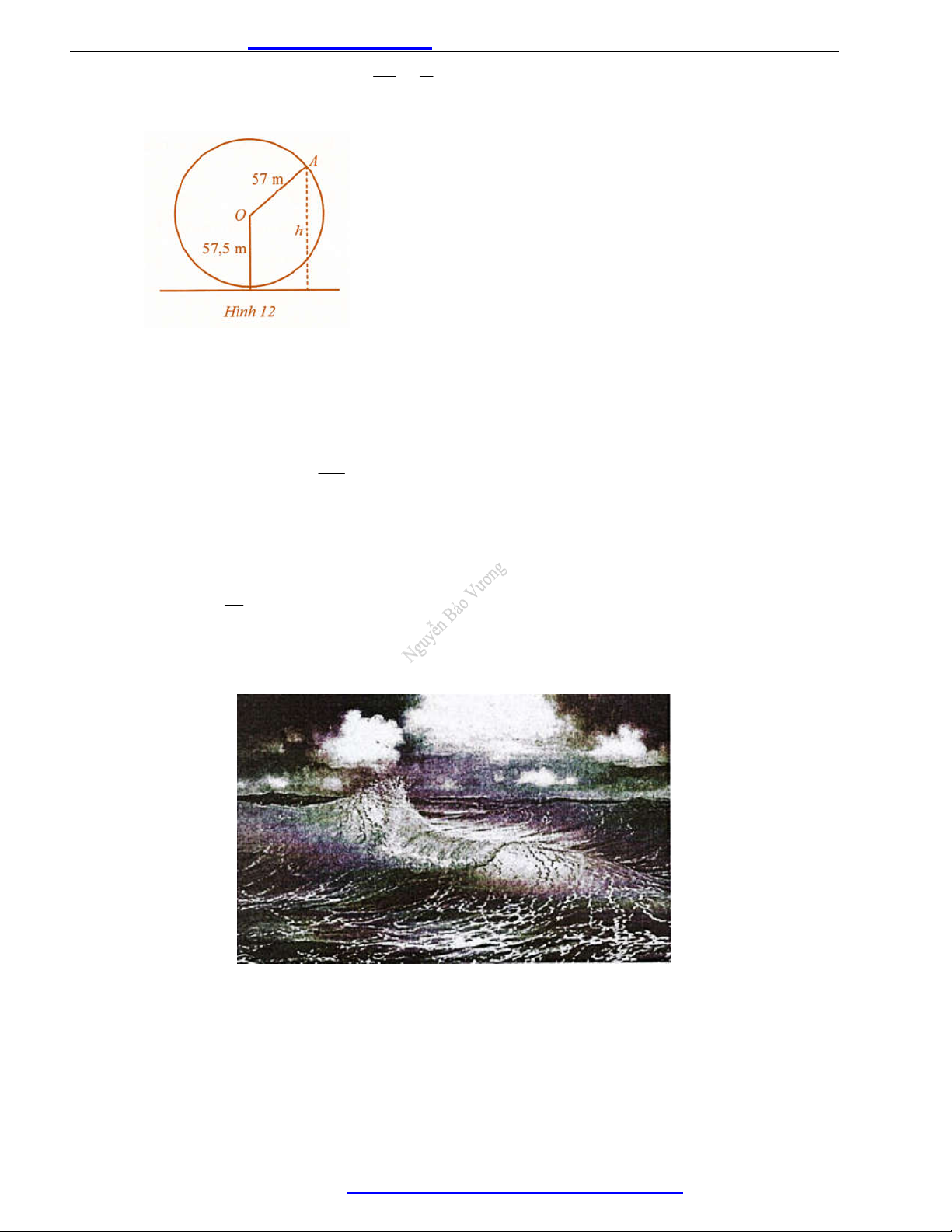 Câu 67. Một vòng quay trò chơi có bán kính 57 m , trục quay cách mặt đất 57,5 m , quay đều mỗi vòng hết