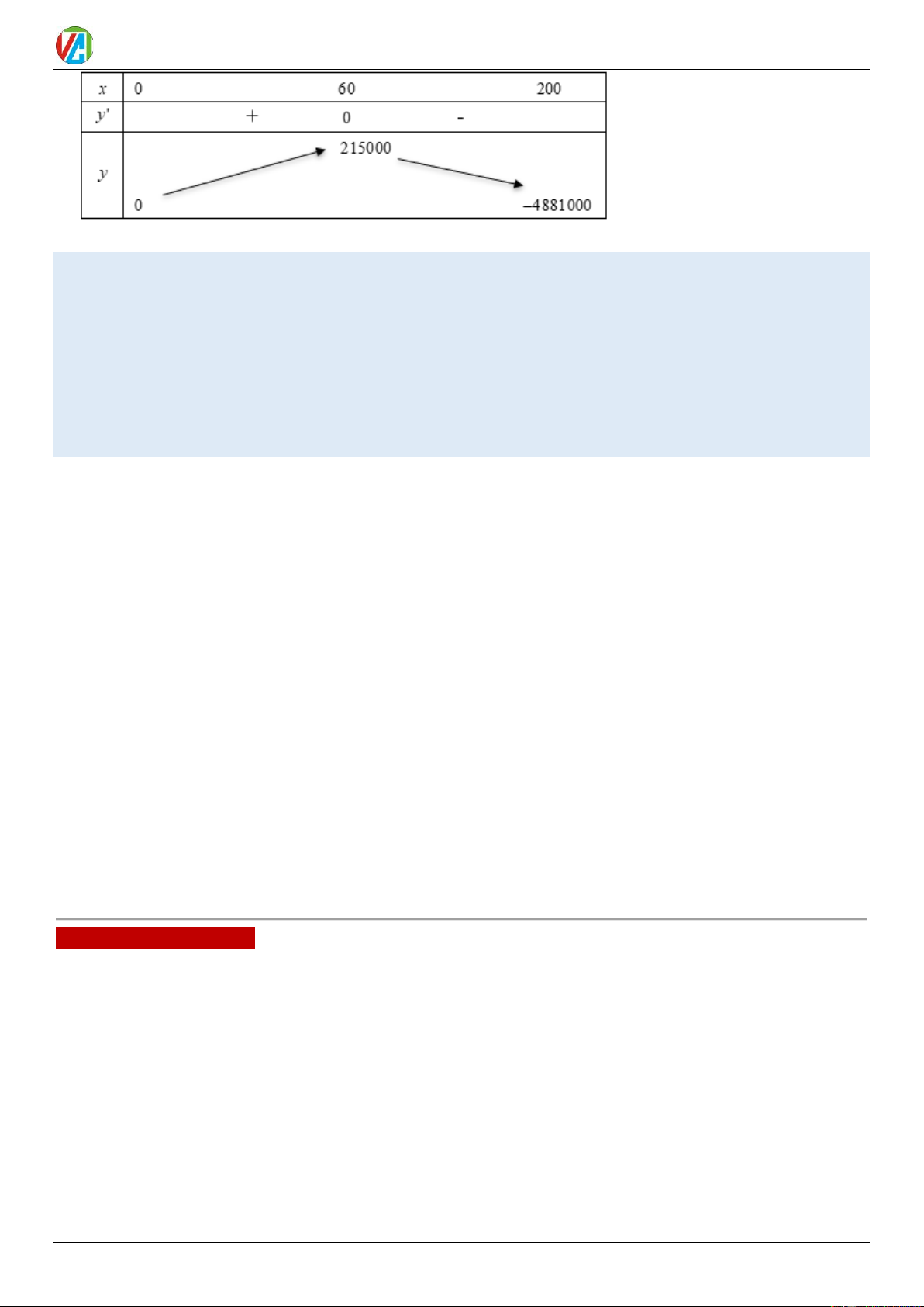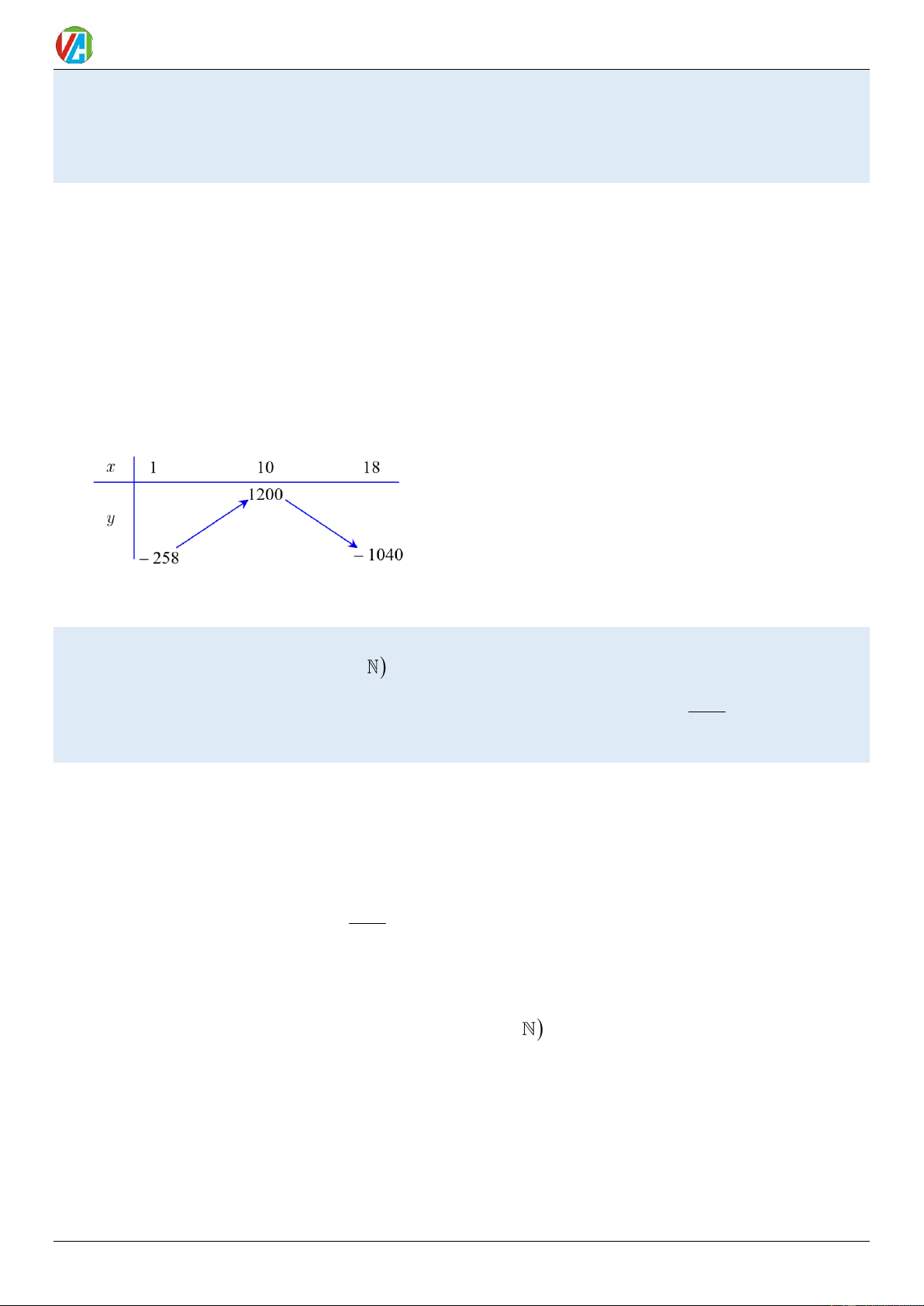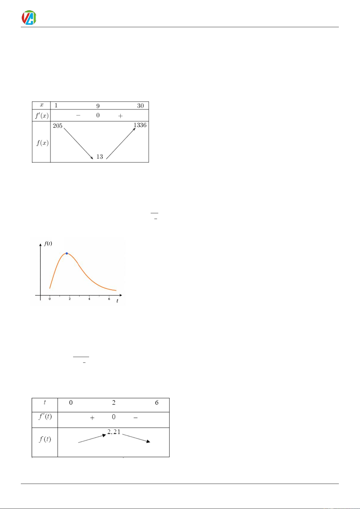 có bao nhiêu ngày có số lượng quần áo bán ra nhiều hơn ngày hôm trước? Lời giải Đáp án: 21 Ta có: f ( ) x 6x 54; f = − ( ) x = 0 x = 9 Ta có bảng biến thiên: