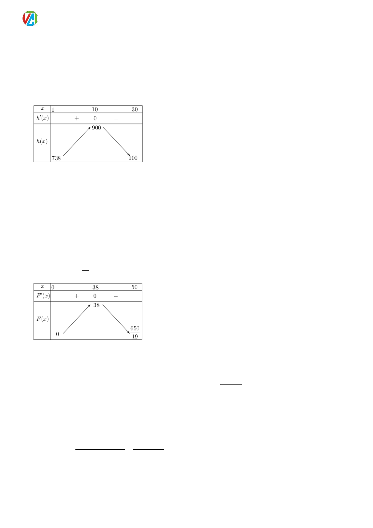 Câu 19. Một khách sạn có 50 phòng cho thuê. Giả sử doanh thu (tức là tổng số tiền thu được) là 1 2 T (x) = −