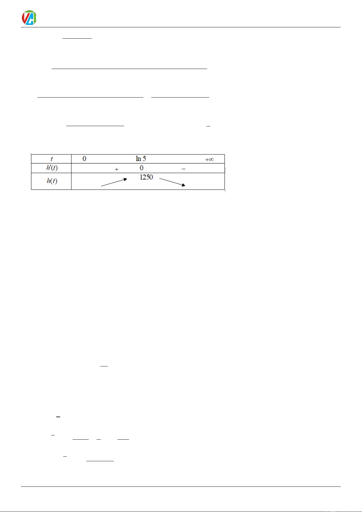 Toán 12_Bài toán thực tế về hàm số −t Đặt 25000e h(t) = ( . 1+ 5 −t e )2 2 − 5000 −t e (1+ 5 −t
