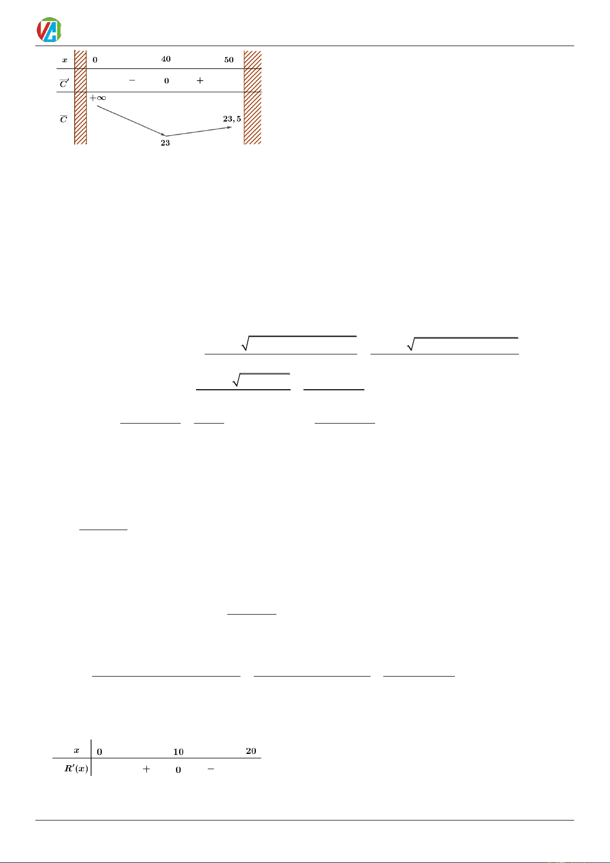 = 0 x = 40 (vì 0 x 50 ). 2 4x Bảng biến thiên như sau 0983.900.570 18 2025-2026 Võ Công Trường
