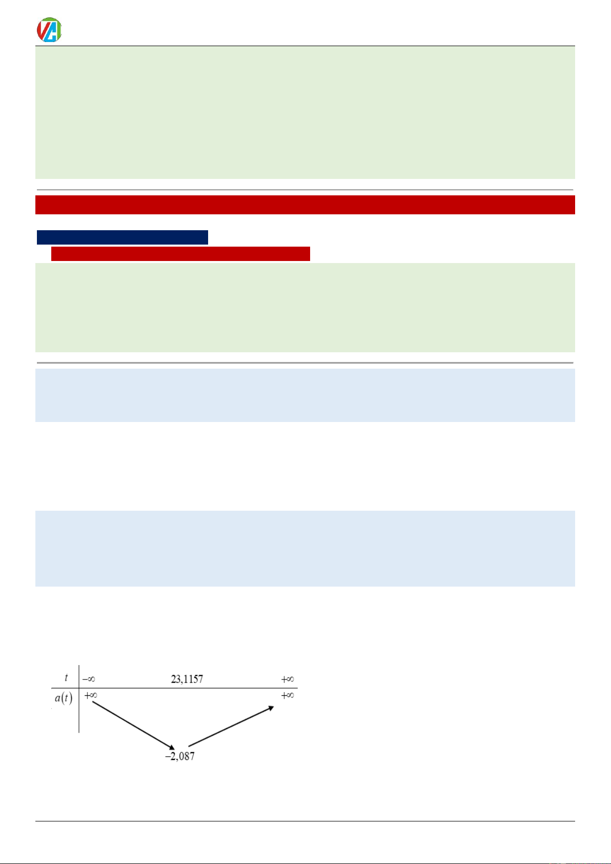 điểm tàu con thoi đạt gia tốc nhỏ nhất thì tốc độ tàu con thoi gần bằng bao nhiêu? (Kết quả làm tròn đến hàng phần mười). Lời giải Đáp án: 20,8 Ta có: a (t ) 2