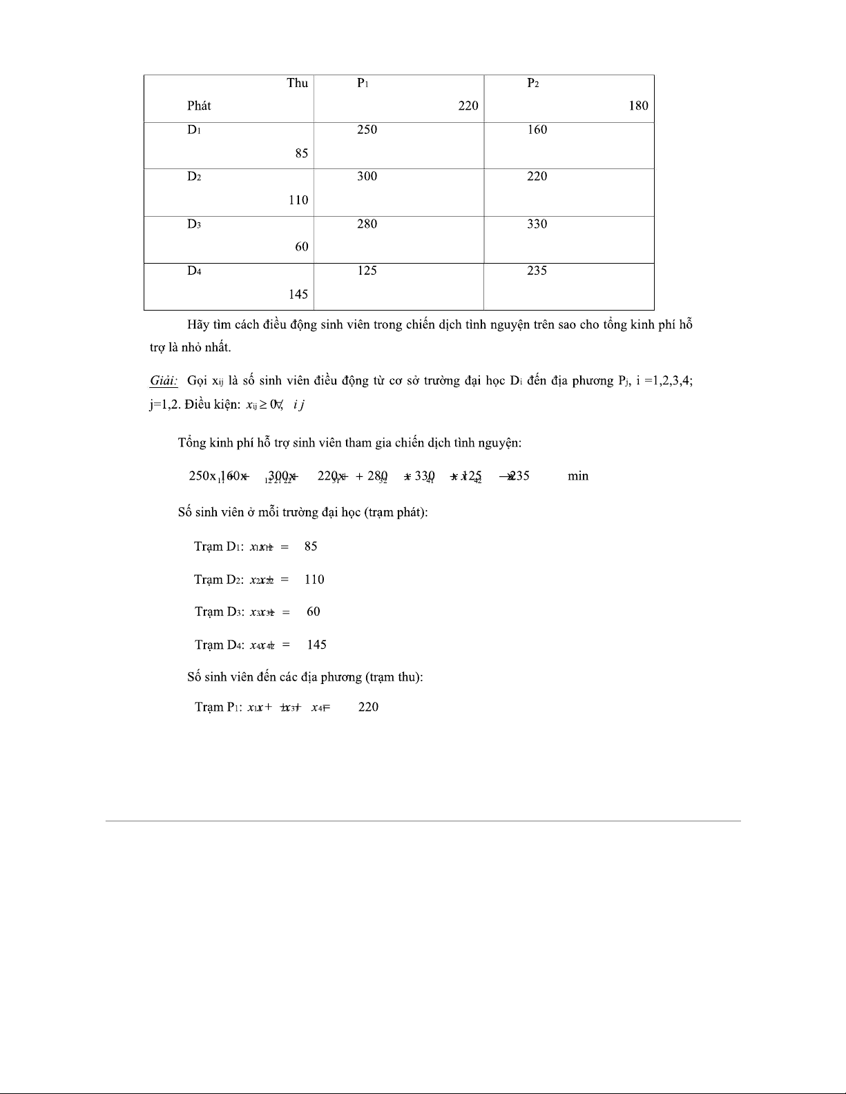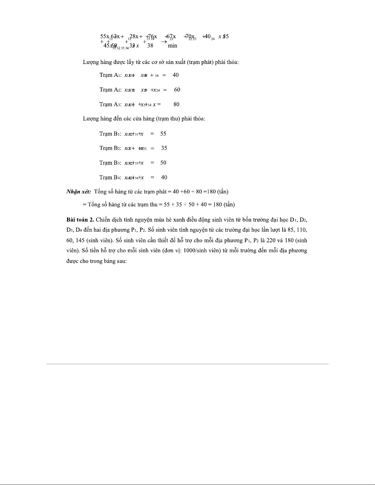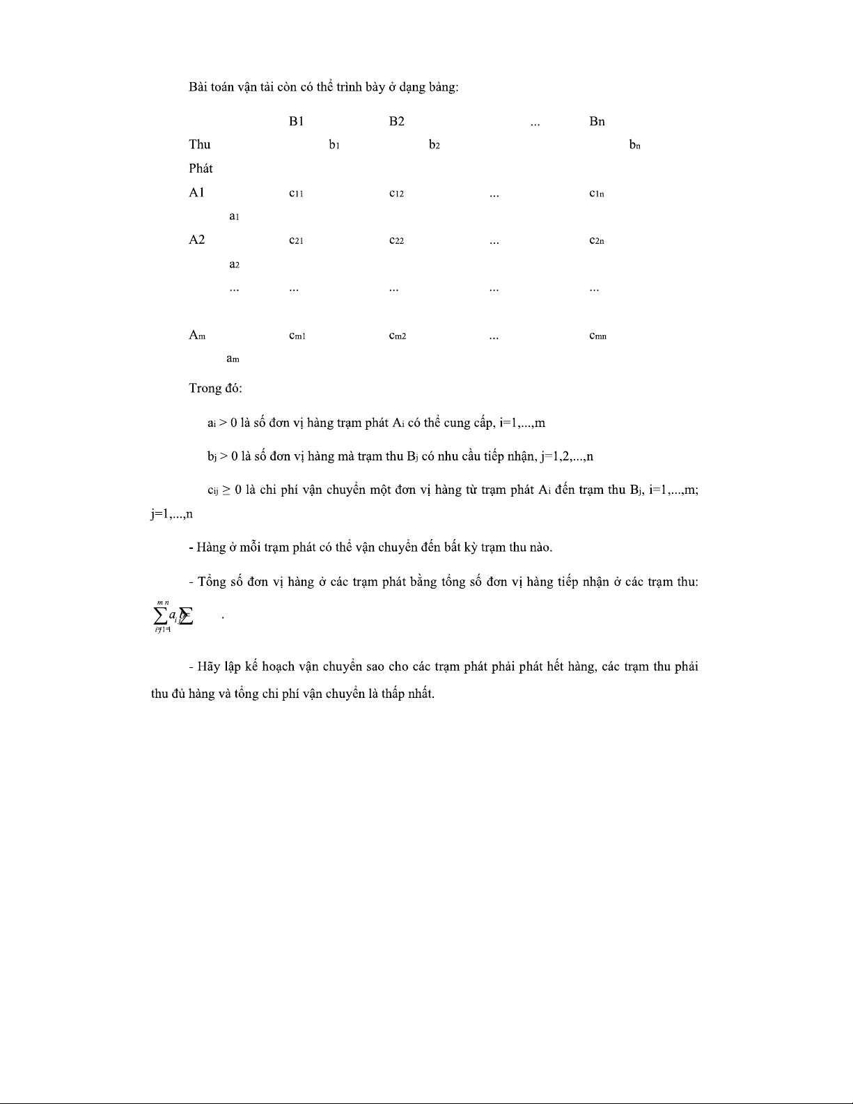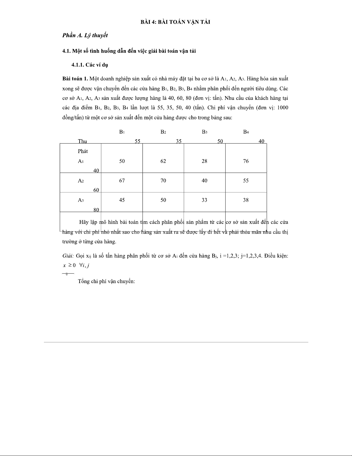BÀI TOÁN VẬN TẢI - Bài Tập và Các Giải Thuyết Cơ Bản