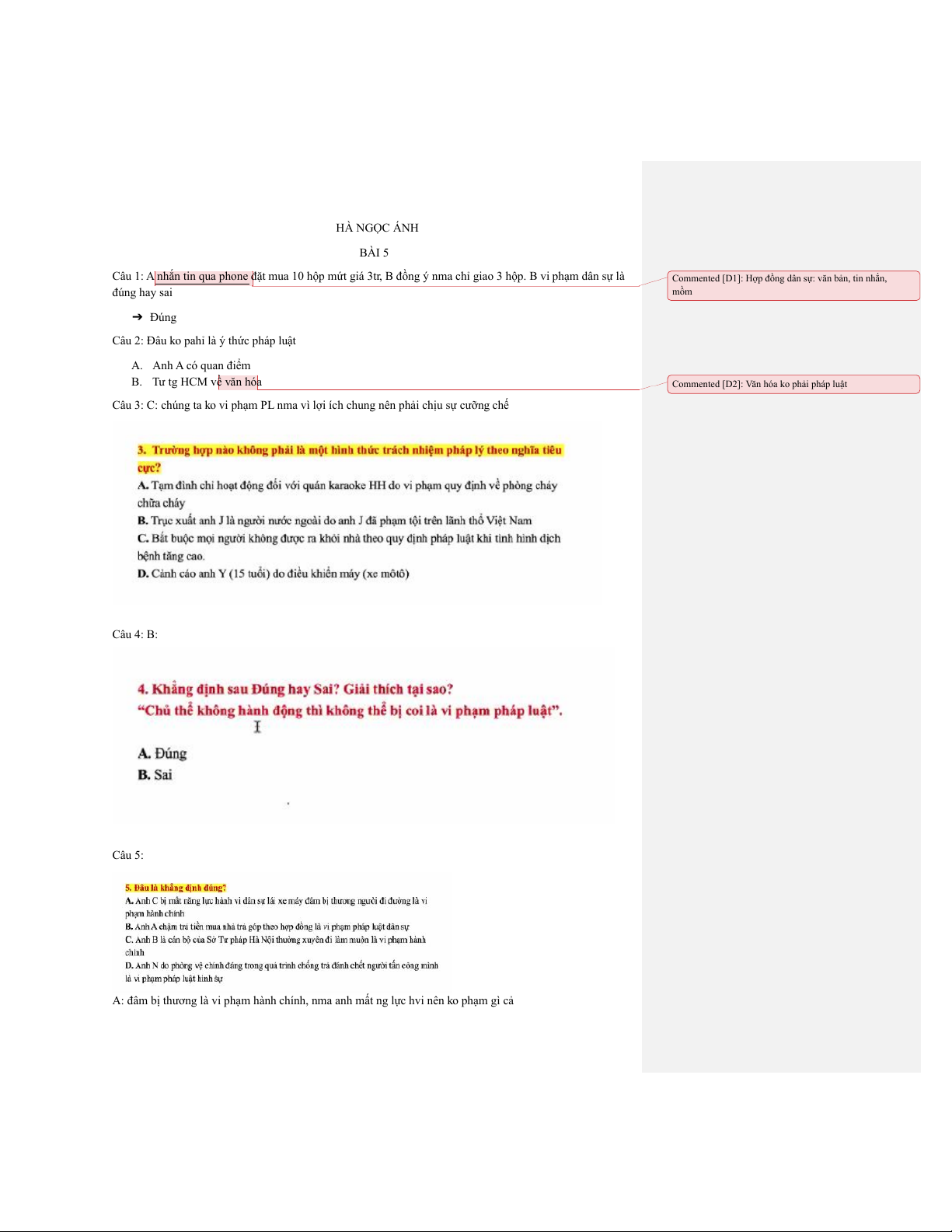 Câu 2: D -> có thể phạt hành chính do gây mất trật tựu đô thị