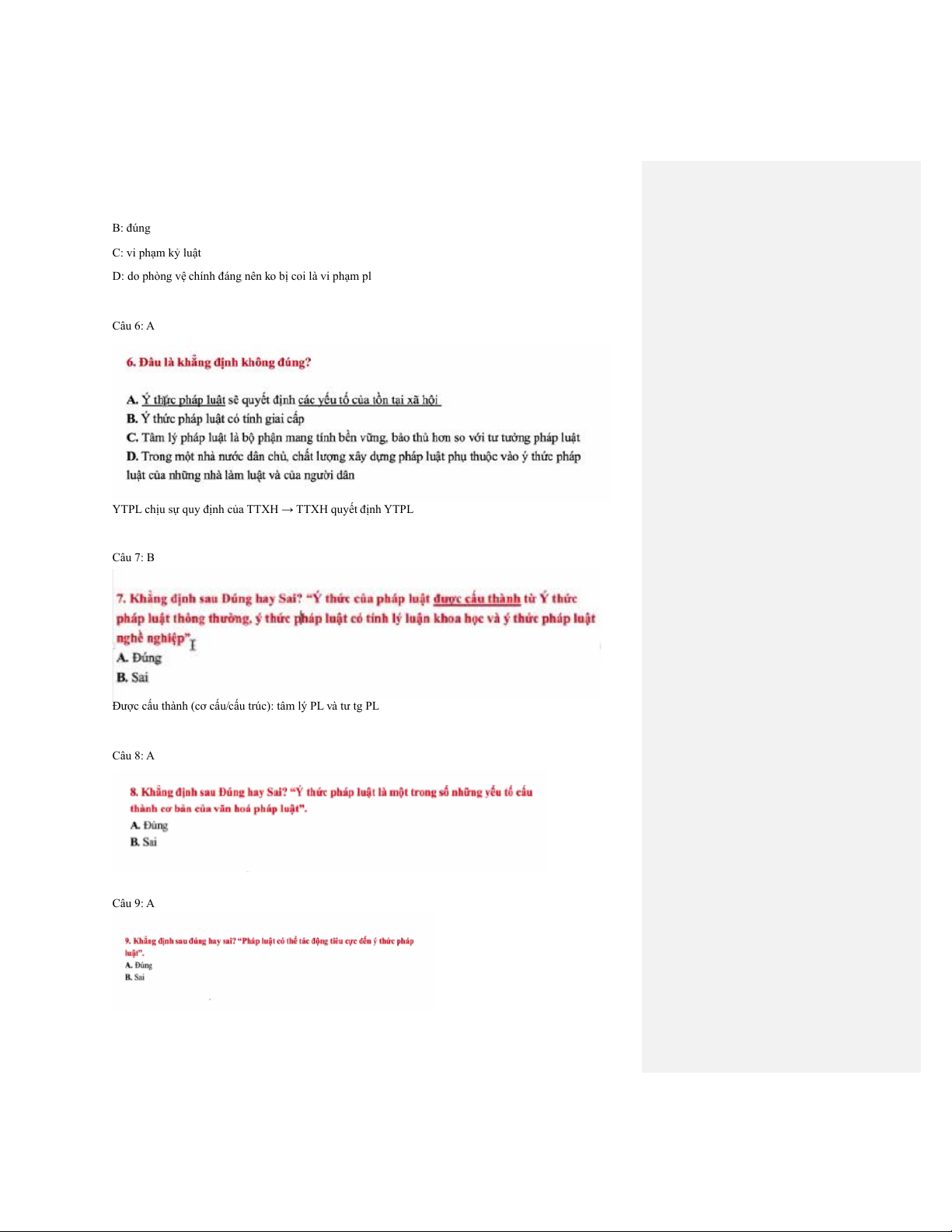 Được cấu thành (cơ cấu/cấu trúc): tâm lý PL và tư tg PL Câu 8: A Câu 9: A