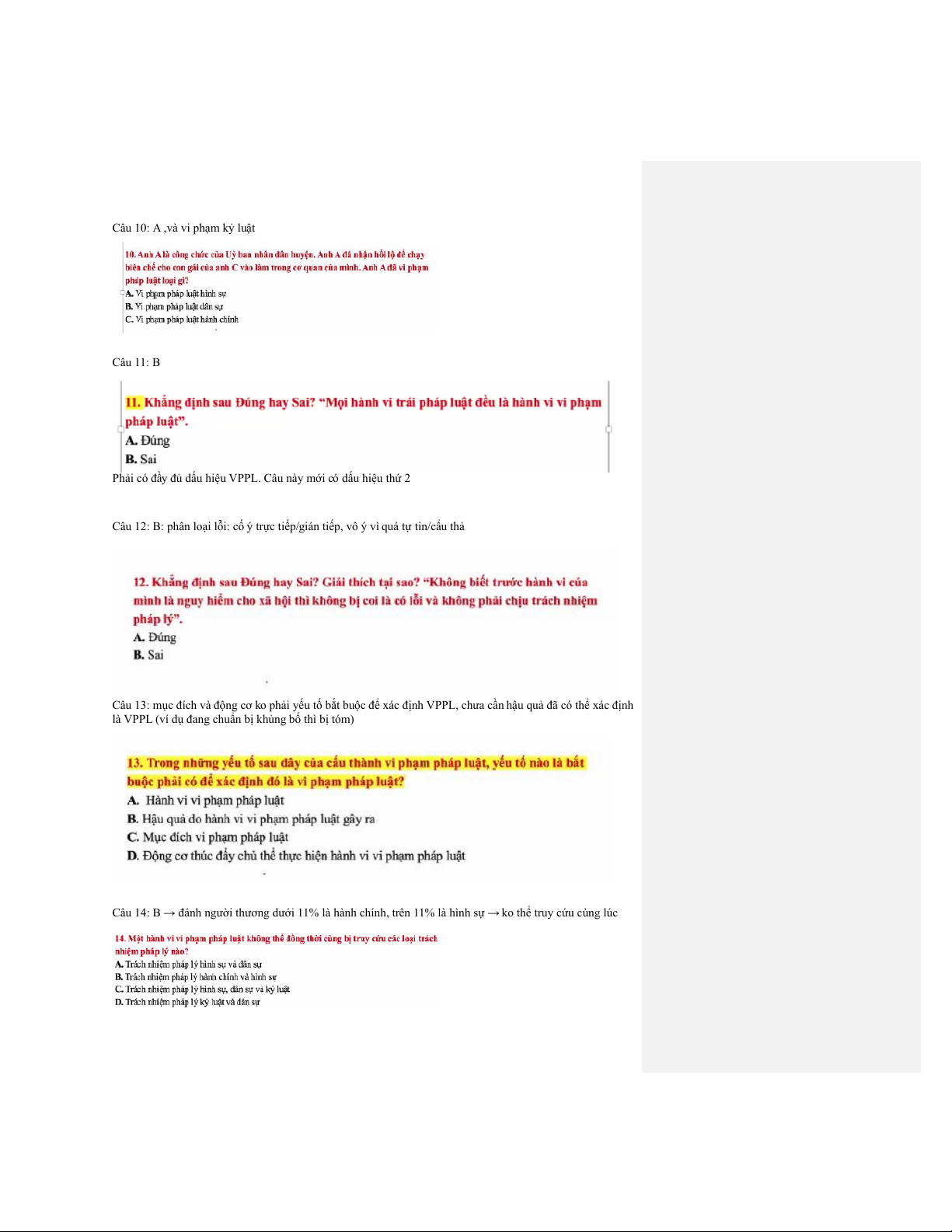 Câu 13: mục đích và động cơ ko phải yếu tố bắt buộc để xác định VPPL, chưa cần hậu quả đã có thể xác định