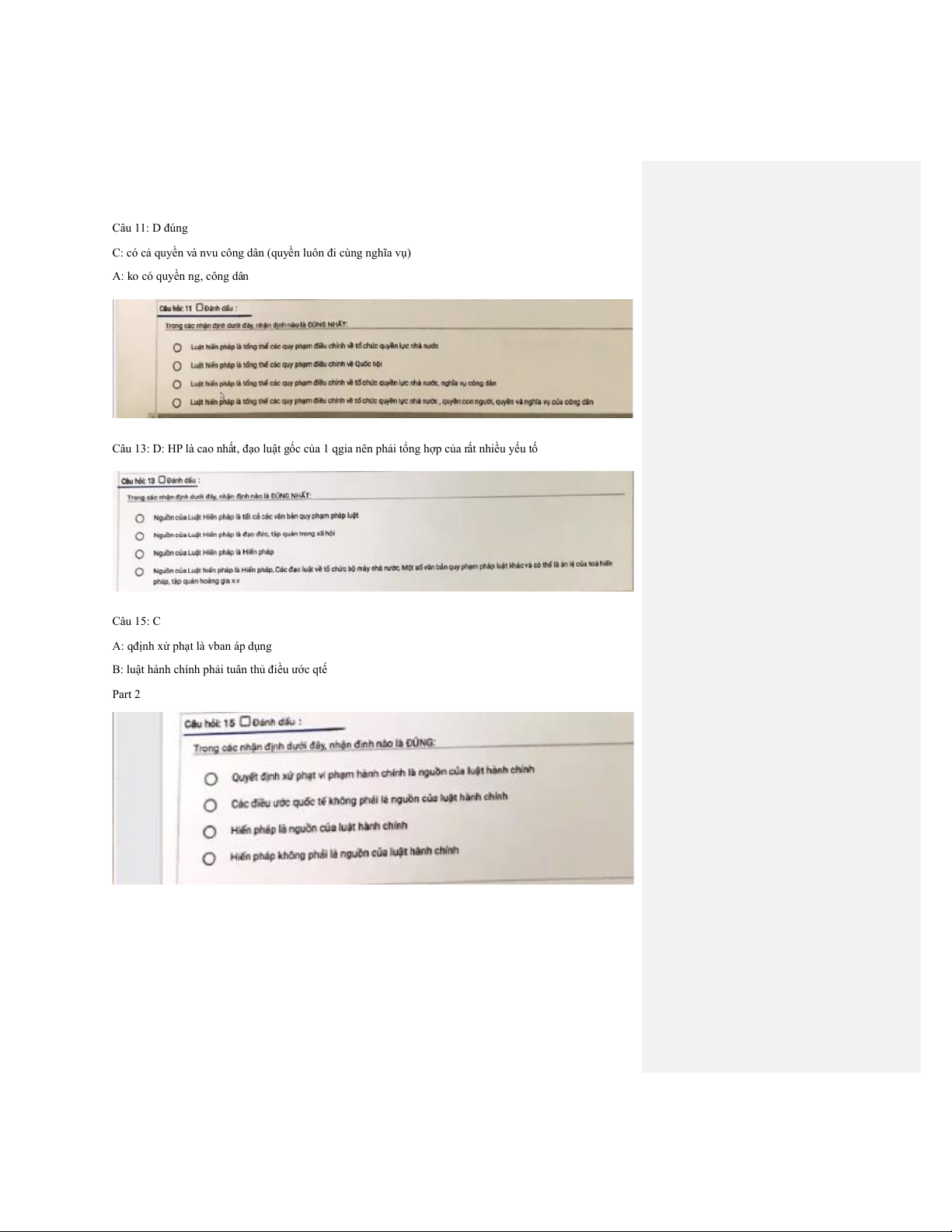 Câu 13: D: HP là cao nhất, đạo luật gốc của 1 qgia nên phải tổng hợp của rất nhiều yếu tố Câu 15: C A: q ị đ nh xử p ạ h t là vban áp dụng