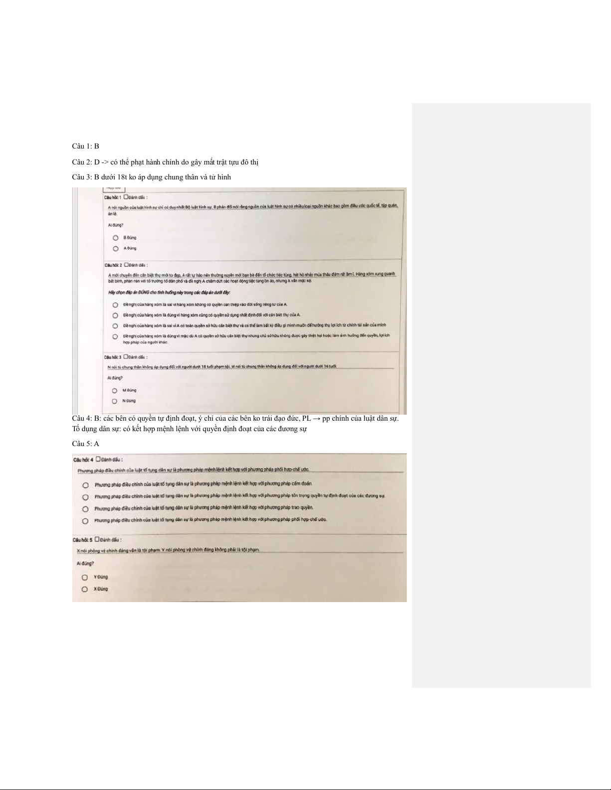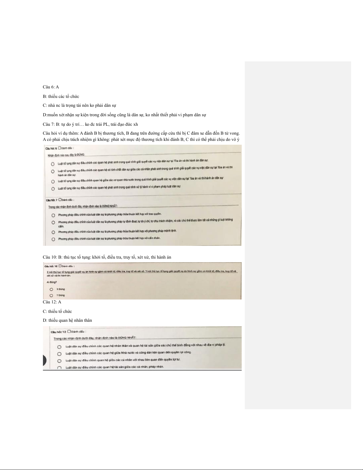 Câu 10: B: thủ tục tố tụng: khởi tố, điều tra, truy tố, xét xử, thi hành án Câu 12: A C: thiếu tổ chức