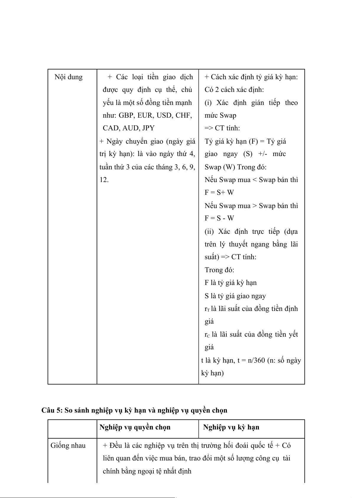 Câu 5: So sánh nghiệp vụ kỳ hạn và nghiệp vụ quyền chọn