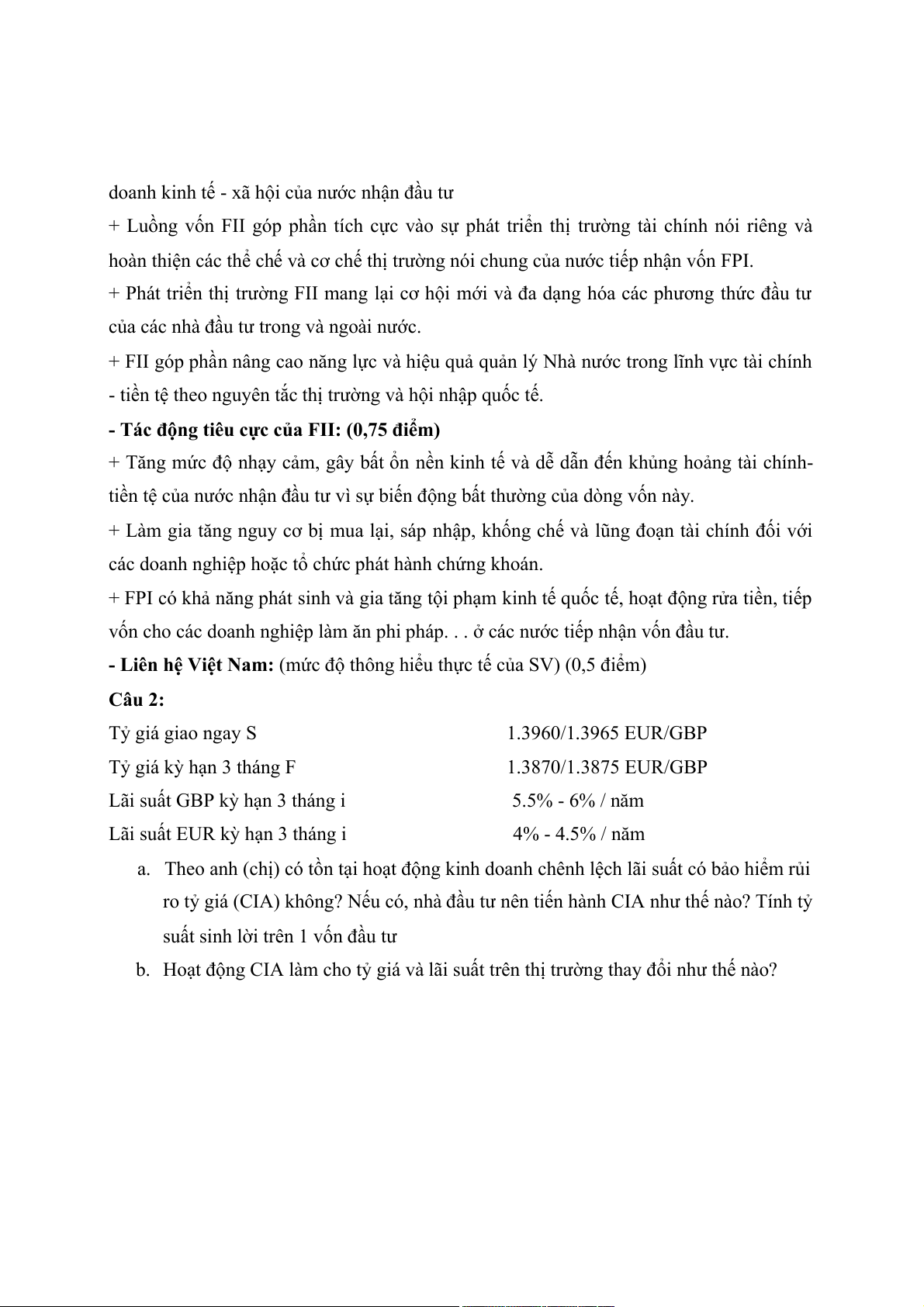- Tác động tiêu cực của FII: (0,75 điểm)