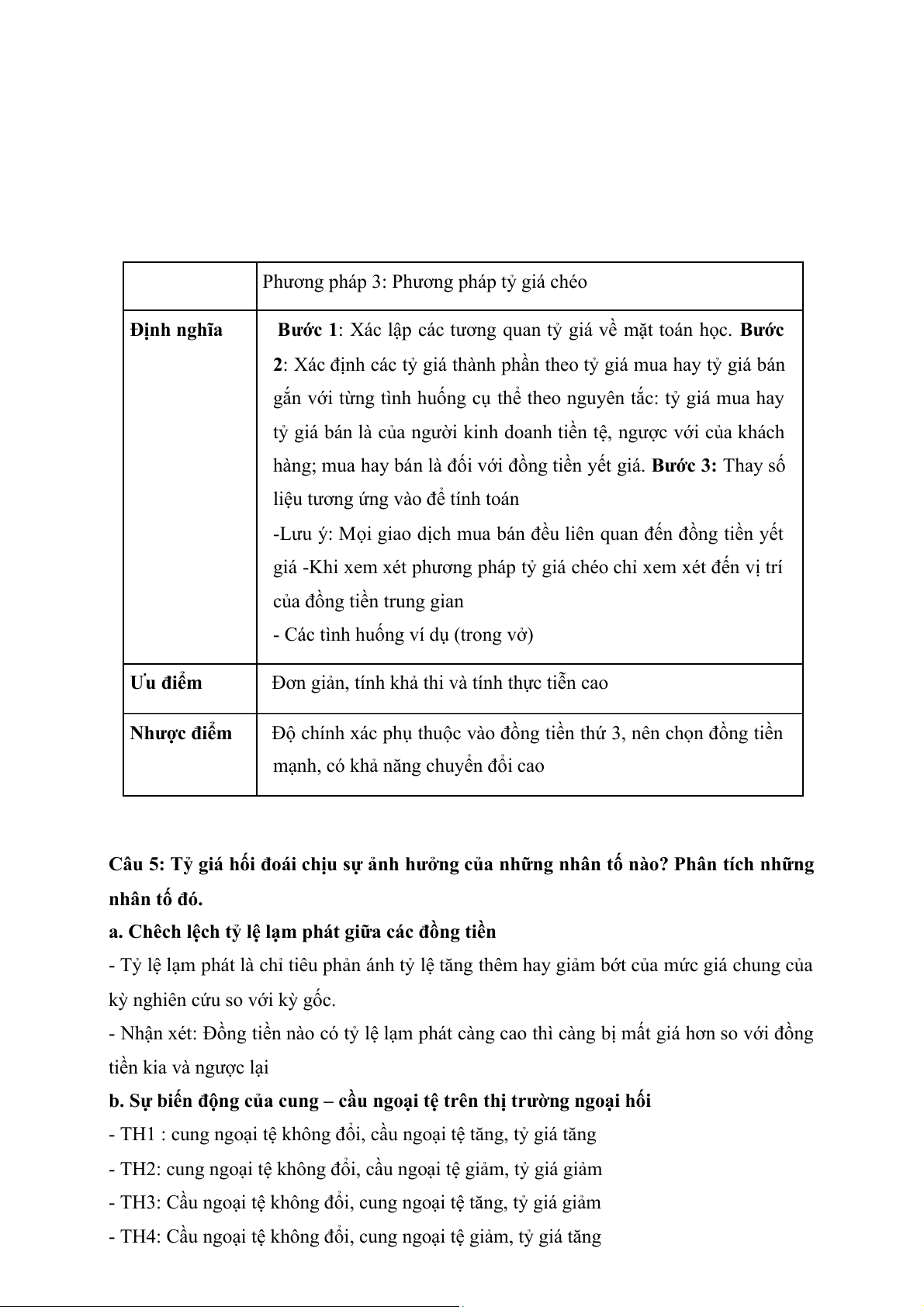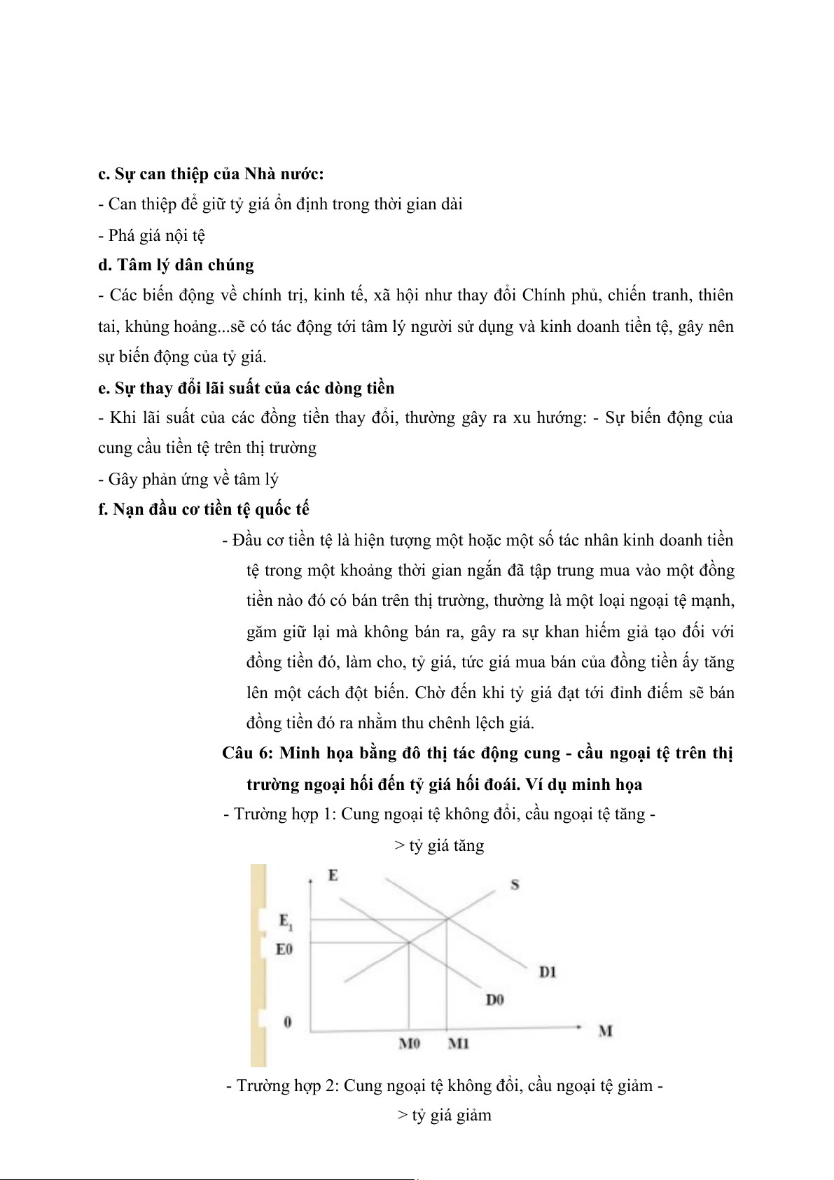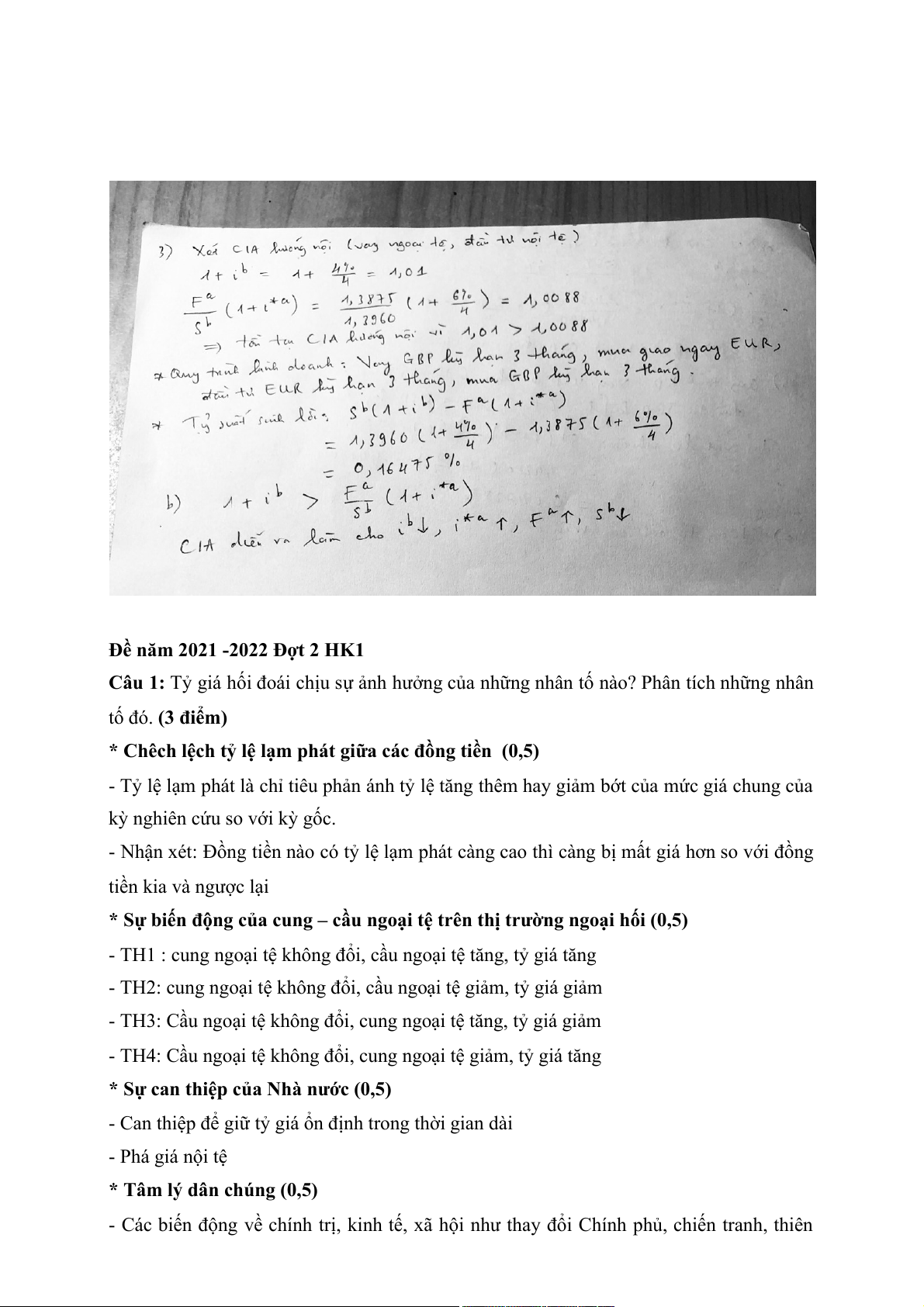 Câu 1: Tỷ giá hối đoái chịu sự ảnh hưởng của những nhân tố nào? Phân tích những nhân tố đó. (3 điểm)