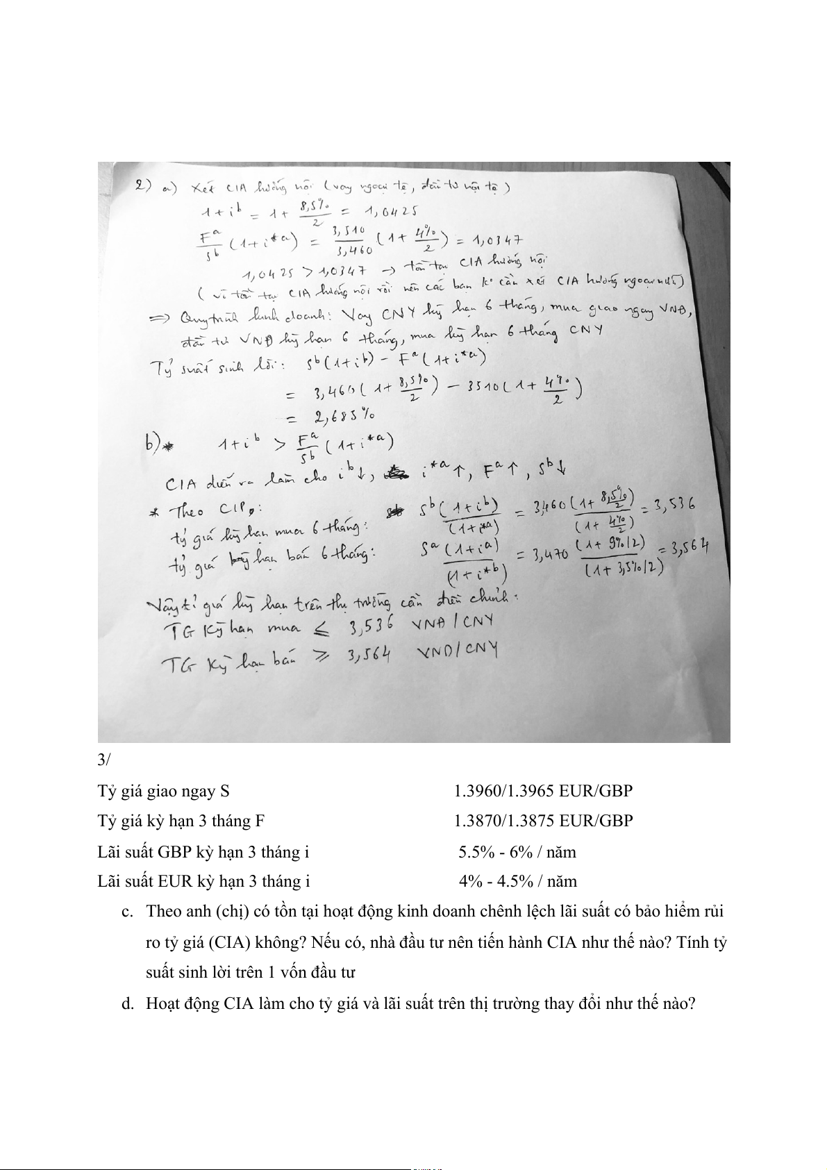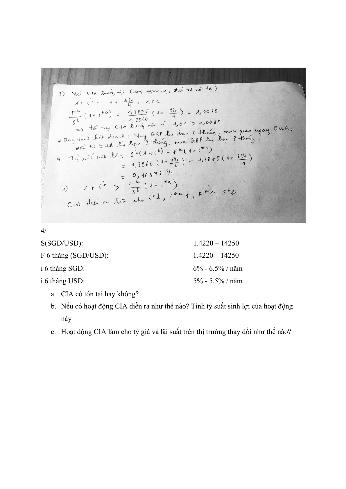 c. Tỷ giá kỳ hạn trên thị trường cần điều chỉnh như thể nào để lý thuyết CIP được đảm bảo? Giai