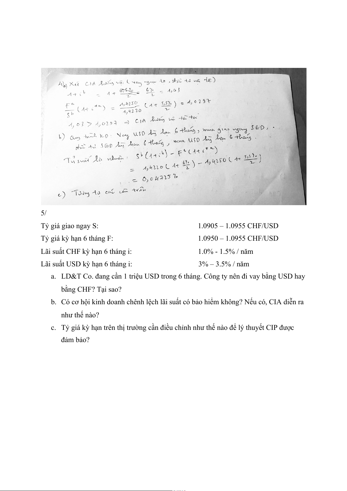 phương án phòng vệ rủi ro tỷ giá so với phương án không bảo hiểm rủi ro tỷ giá. (2 điểm).