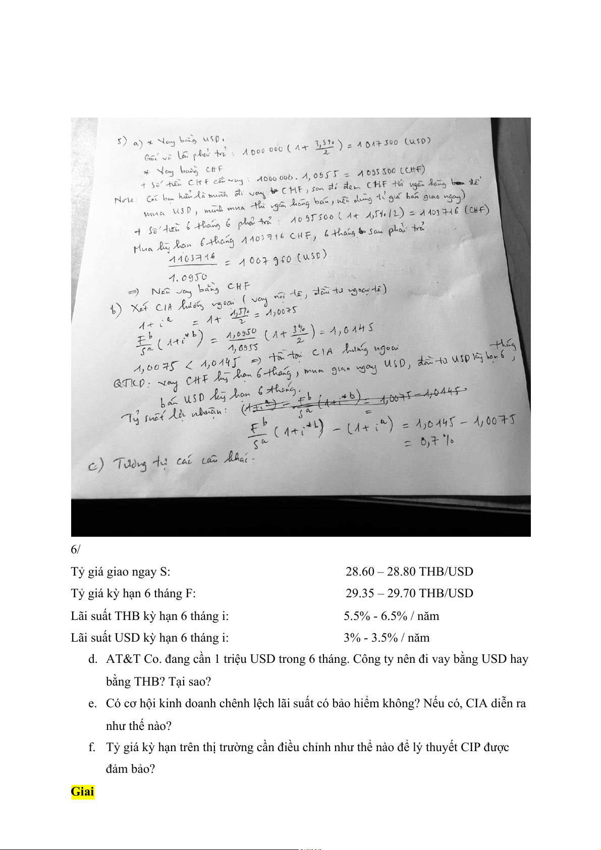 a. AT&T Co. đang cần 1 triệu USD trong 6 tháng. Công ty nên đi vay bằng USD hay bằng THB? Tại sao?