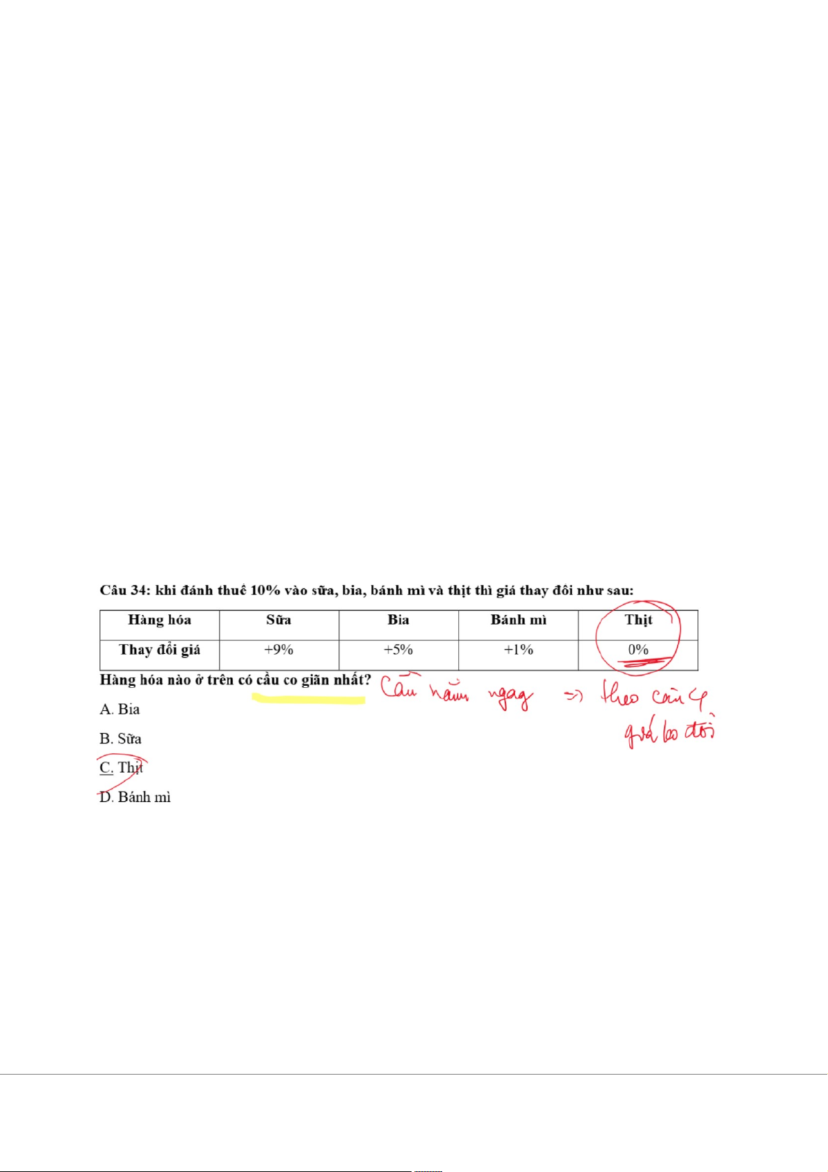 Hàng hóa nào ở trên có cầu co giãn nhất? A. Bia B. Sữa C. Thịt D. Bánh mì