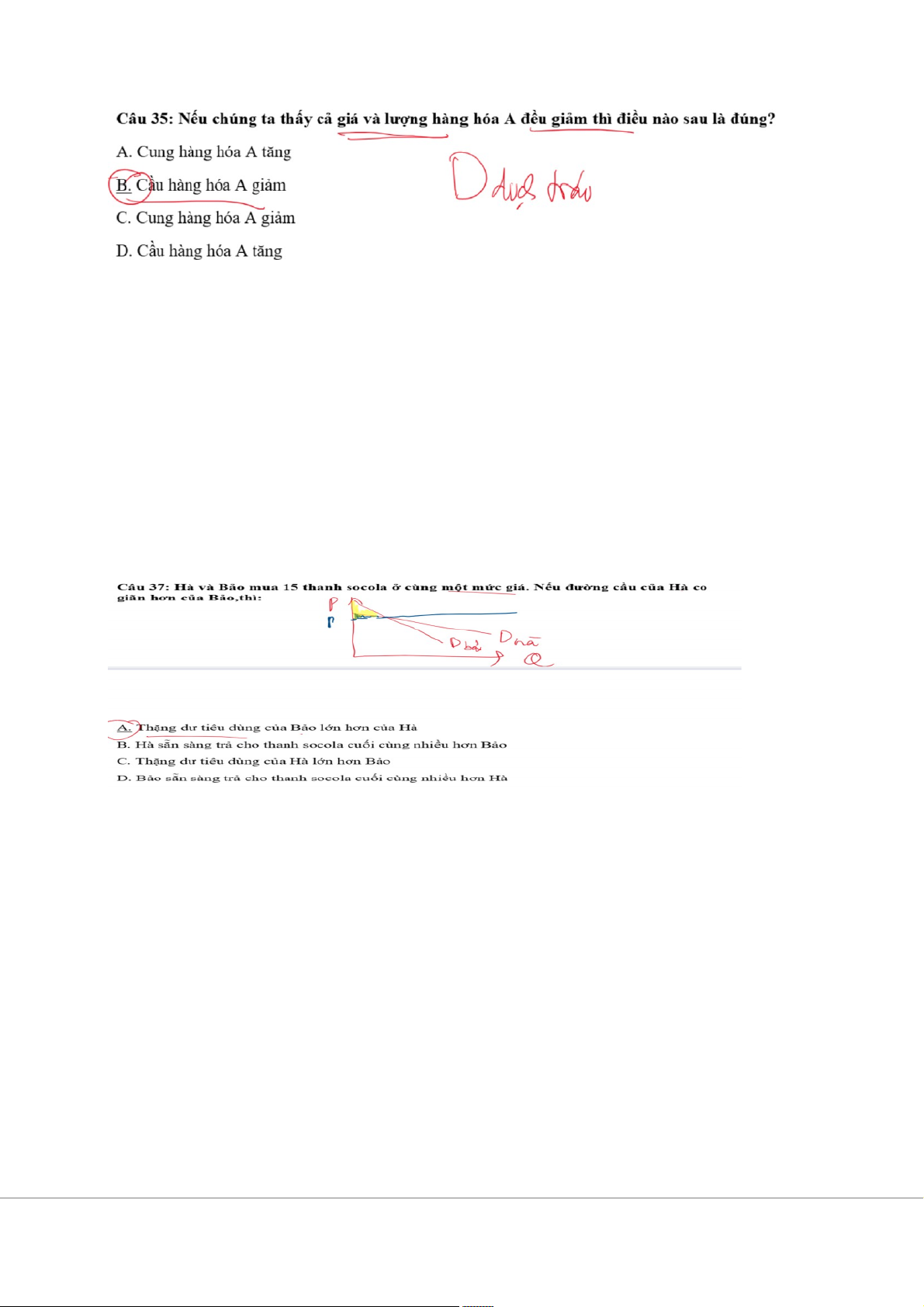 Câu 35.Nếu chúng ta thấy cả giá và lượng hàng hóa A đều giảm thì