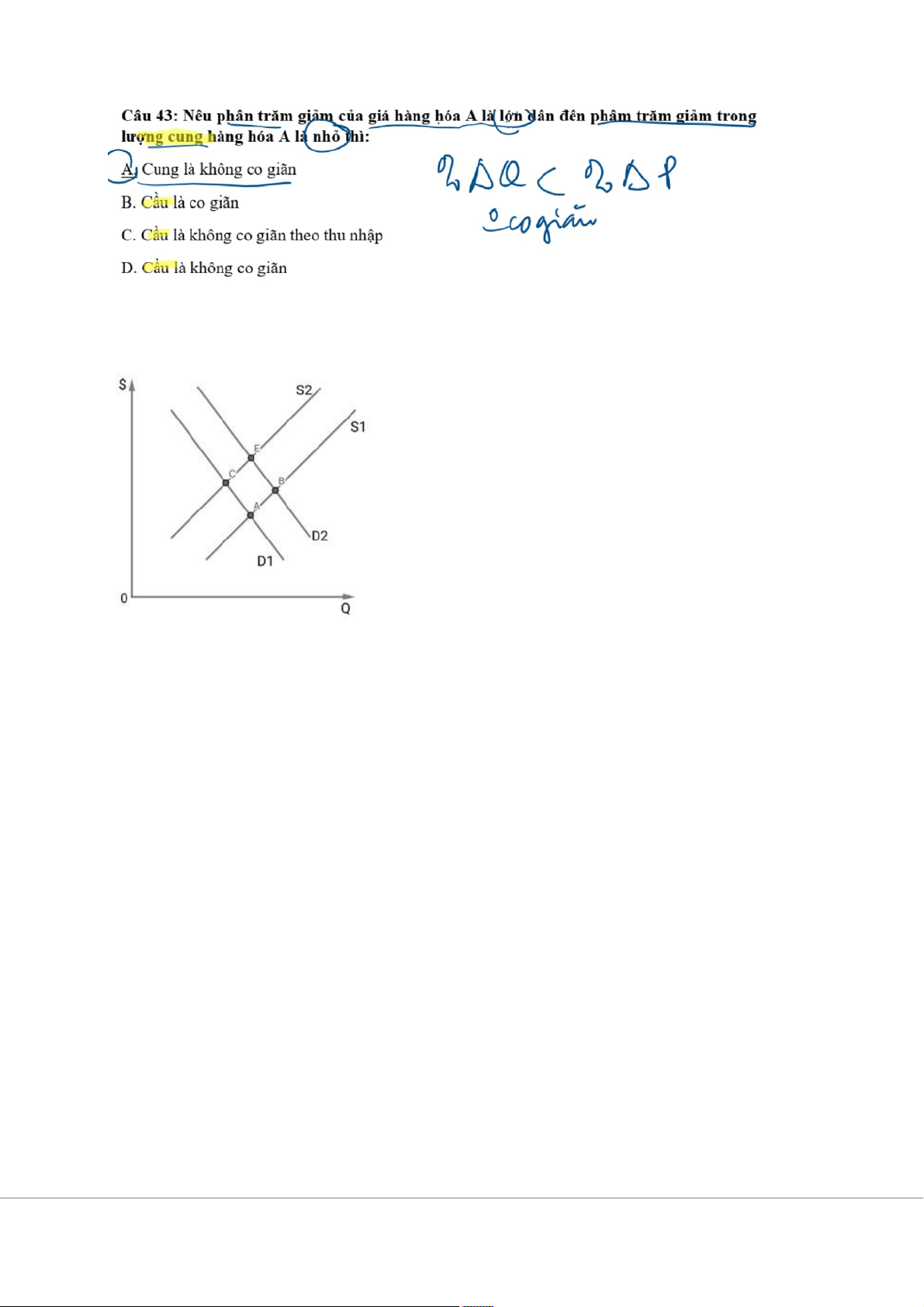 Câu 43.Nếu phần trăm giảm của giá hàng hóa A là lớn dẫn đến phầm