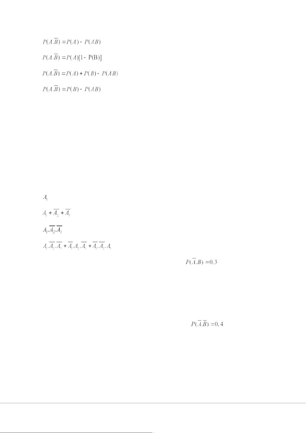 3). Biến cố “sinh viên chỉ thi qua môn thứ nhất” biểu diễn theo A1, A2, A3 là: A. B. C. D.