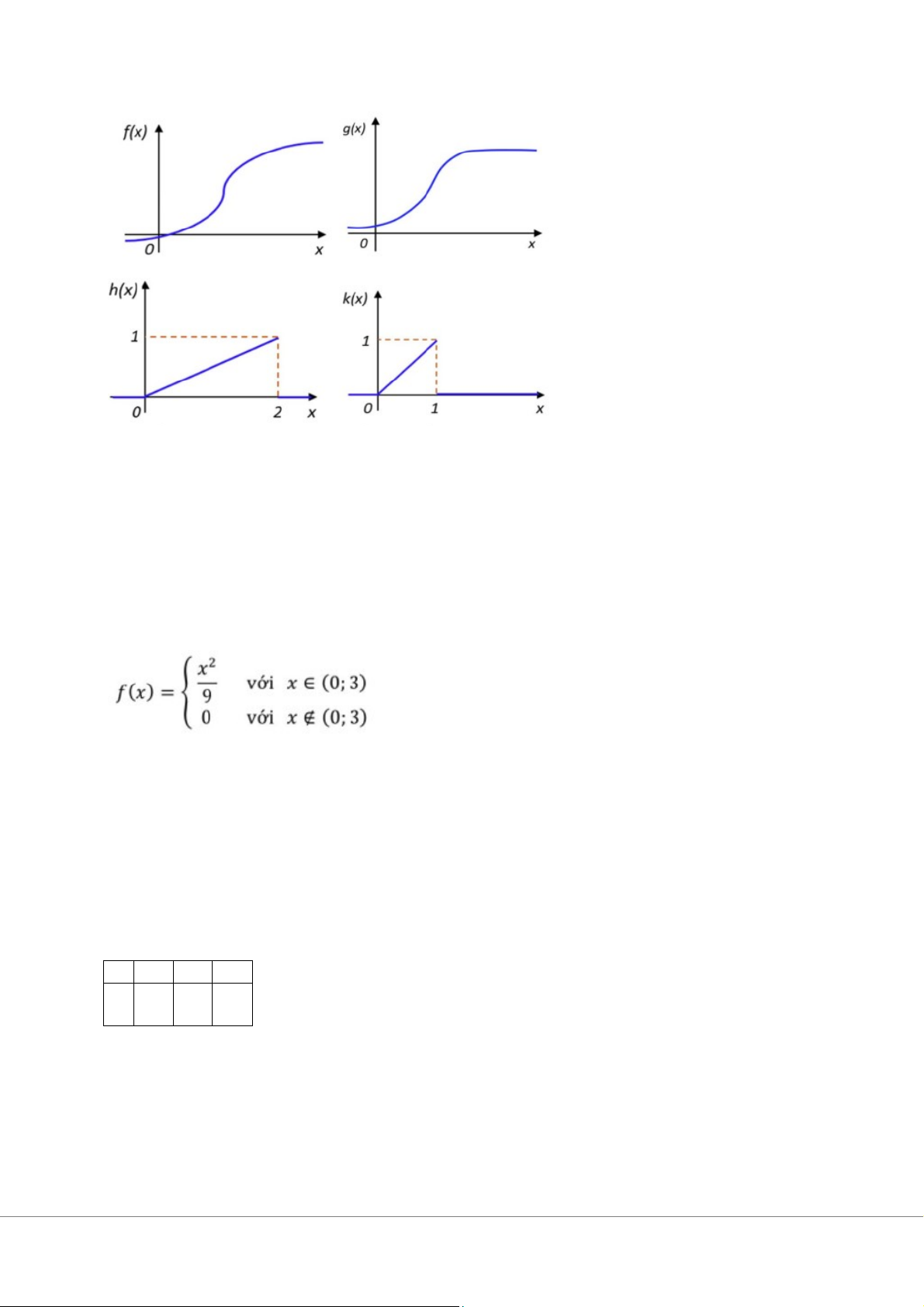 Câu 10. Cho biến ngẫu nhiên liên tục X có hàm mật độ xác suất: