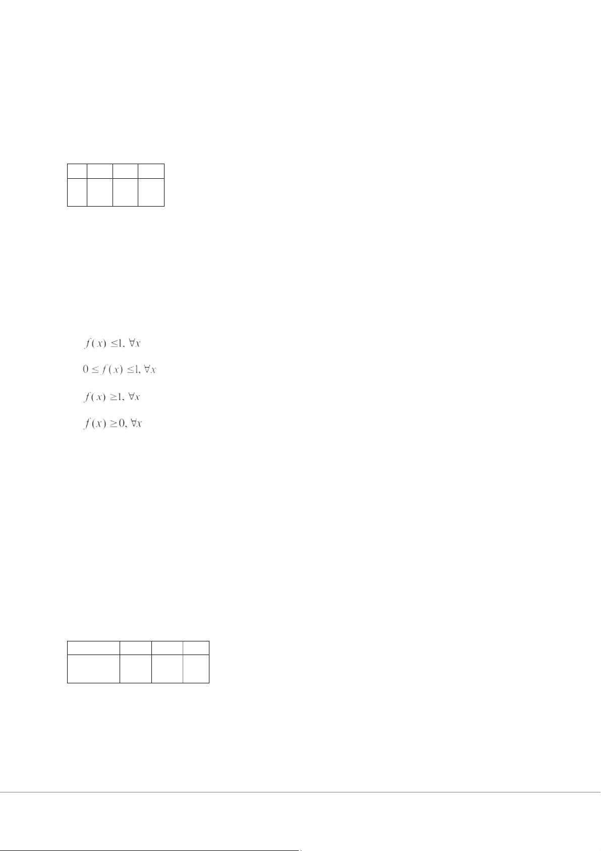 Câu 12. Cho X là biến ngẫu nhiên liên tục có hàm mật độ xác suất f(x). Điều nào sau đây luôn đúng? A. B. C. D.