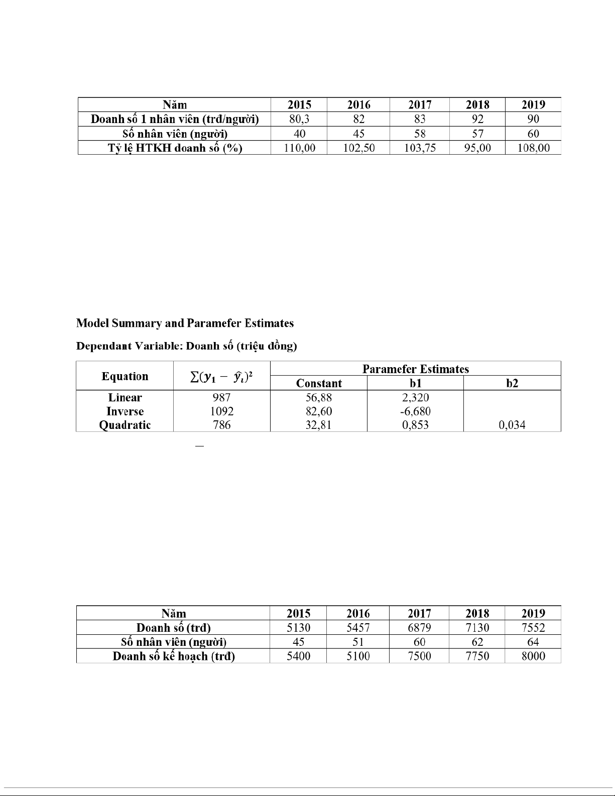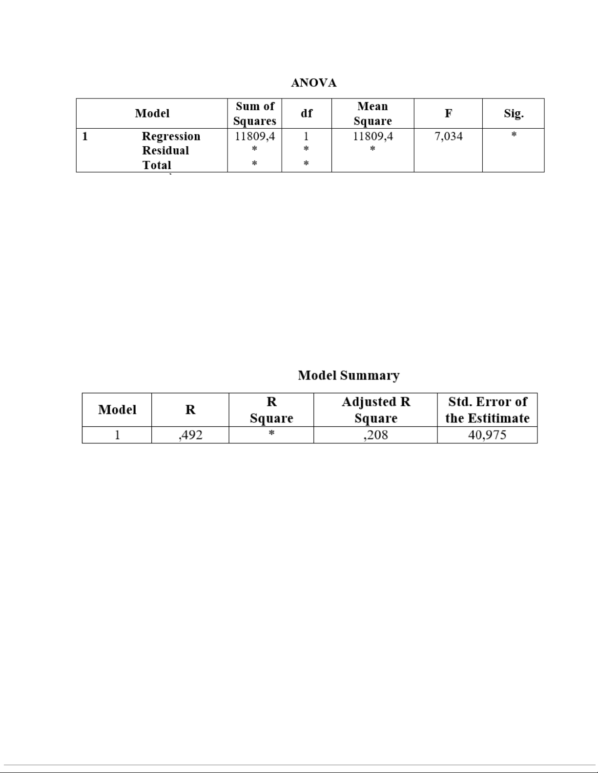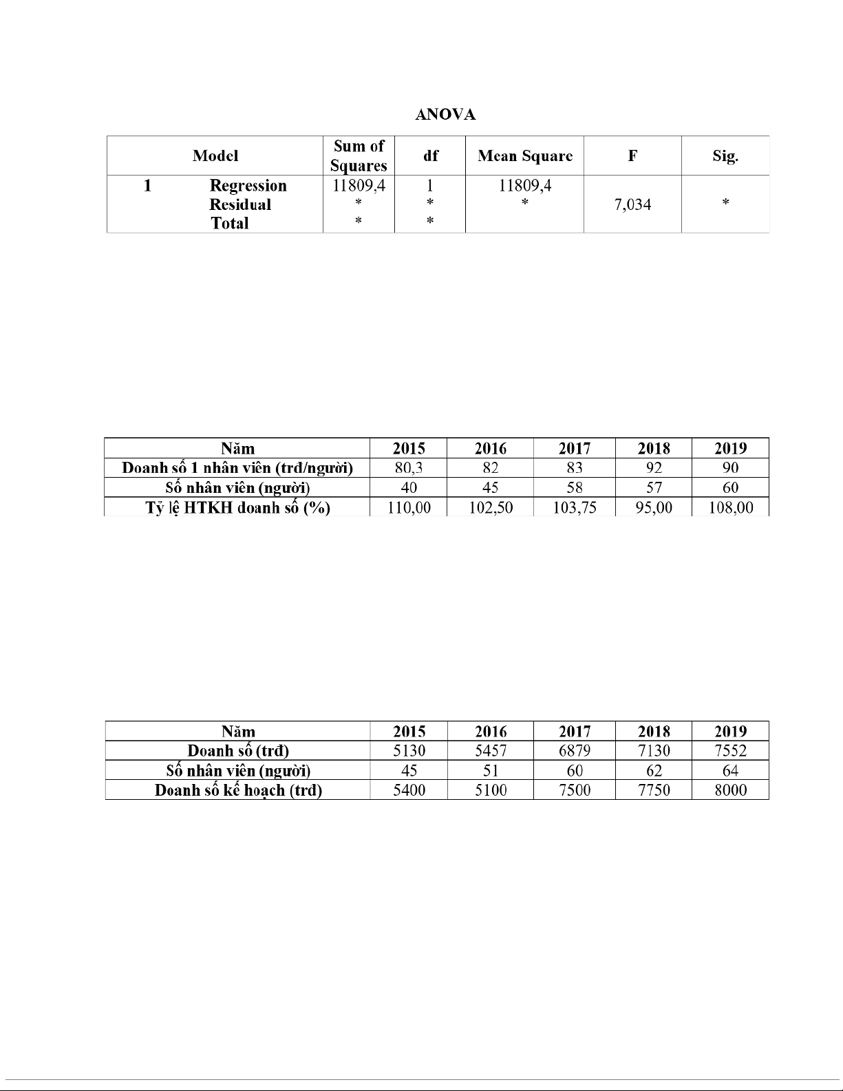 phân tích hồi quy giữa hai biến này. Kết quả trong bảng dưới đây nhưng bị khuyết mất