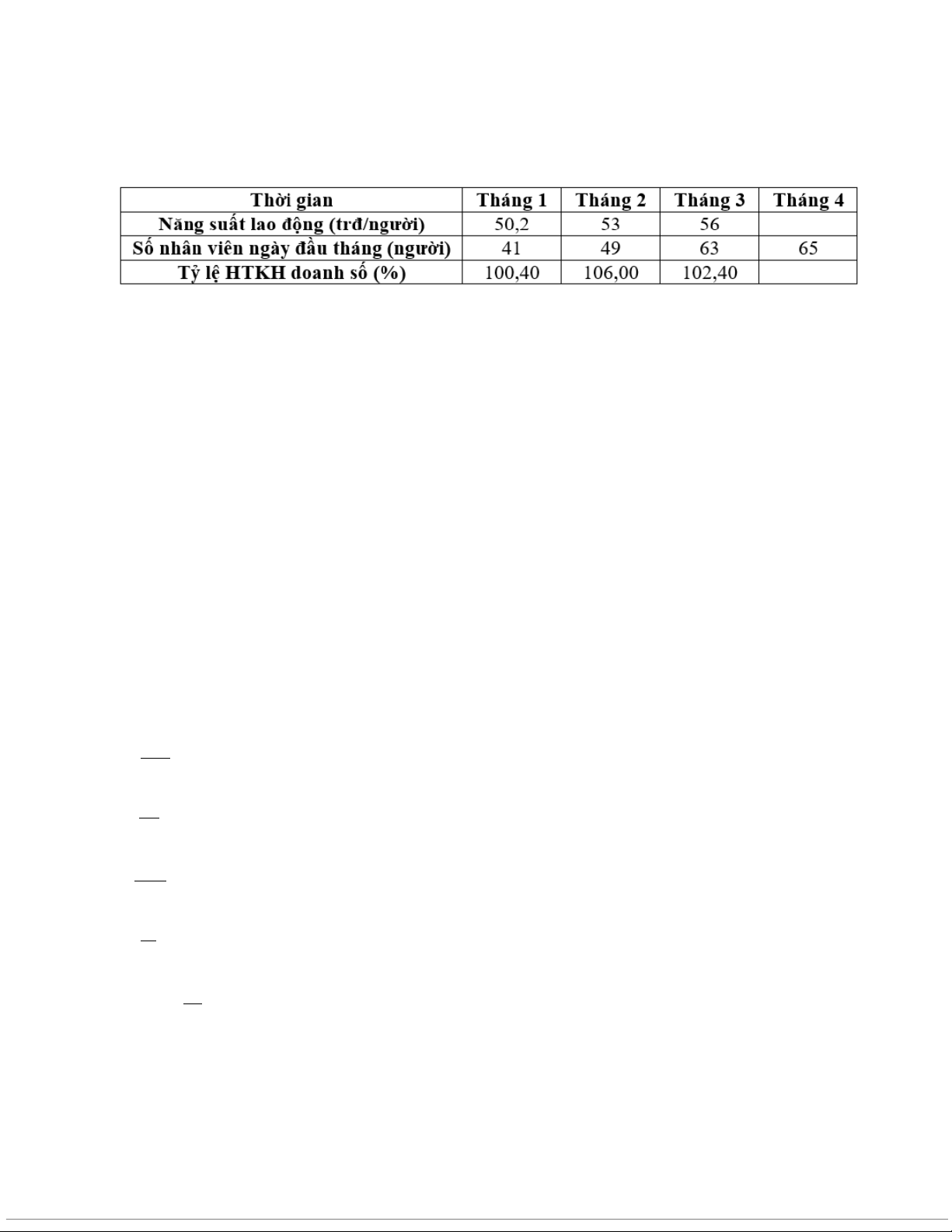 Câu 10: Có số liệu của 1 doanh nghiệp như sau: