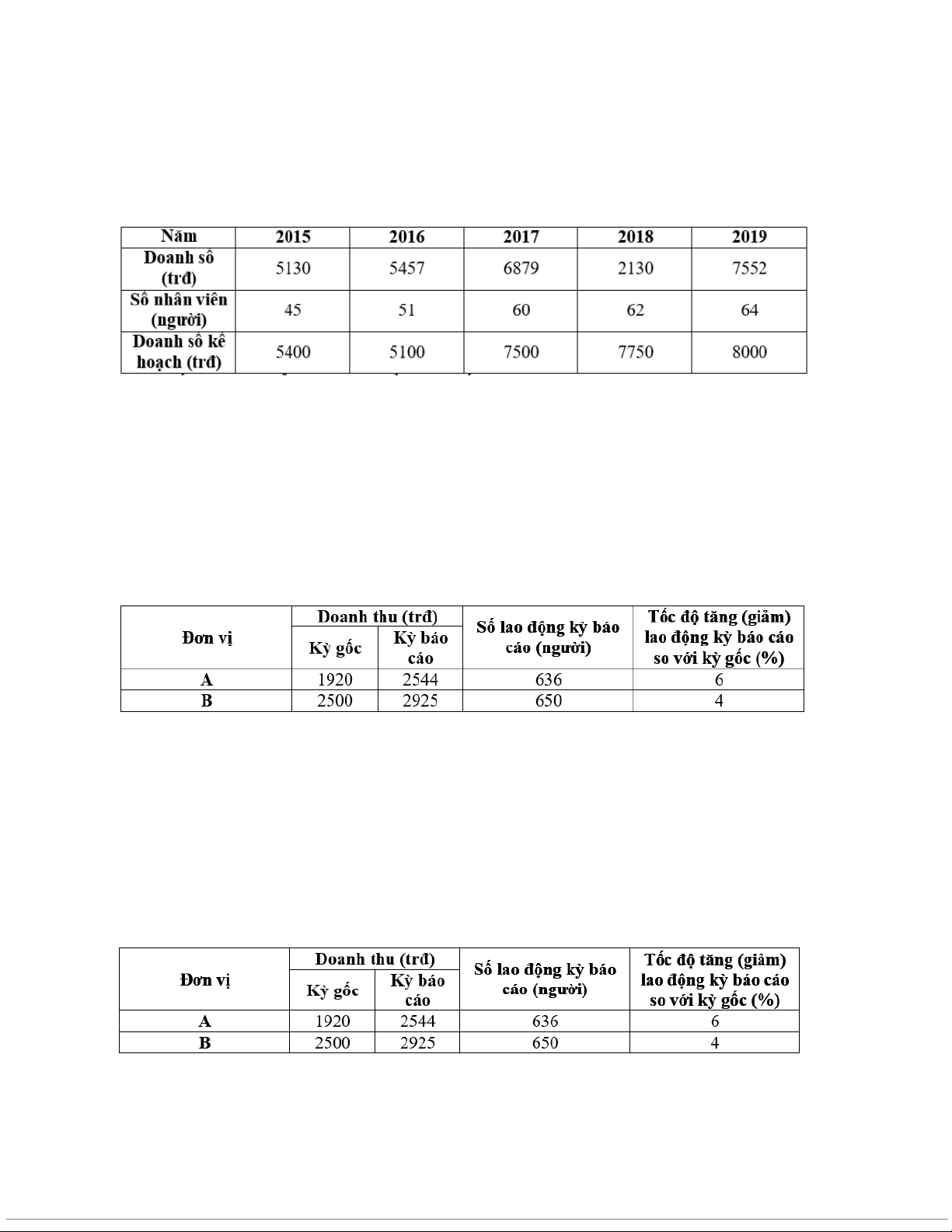 Câu 19: Có tài liệu thống kê của một doanh nghiệp như sau: