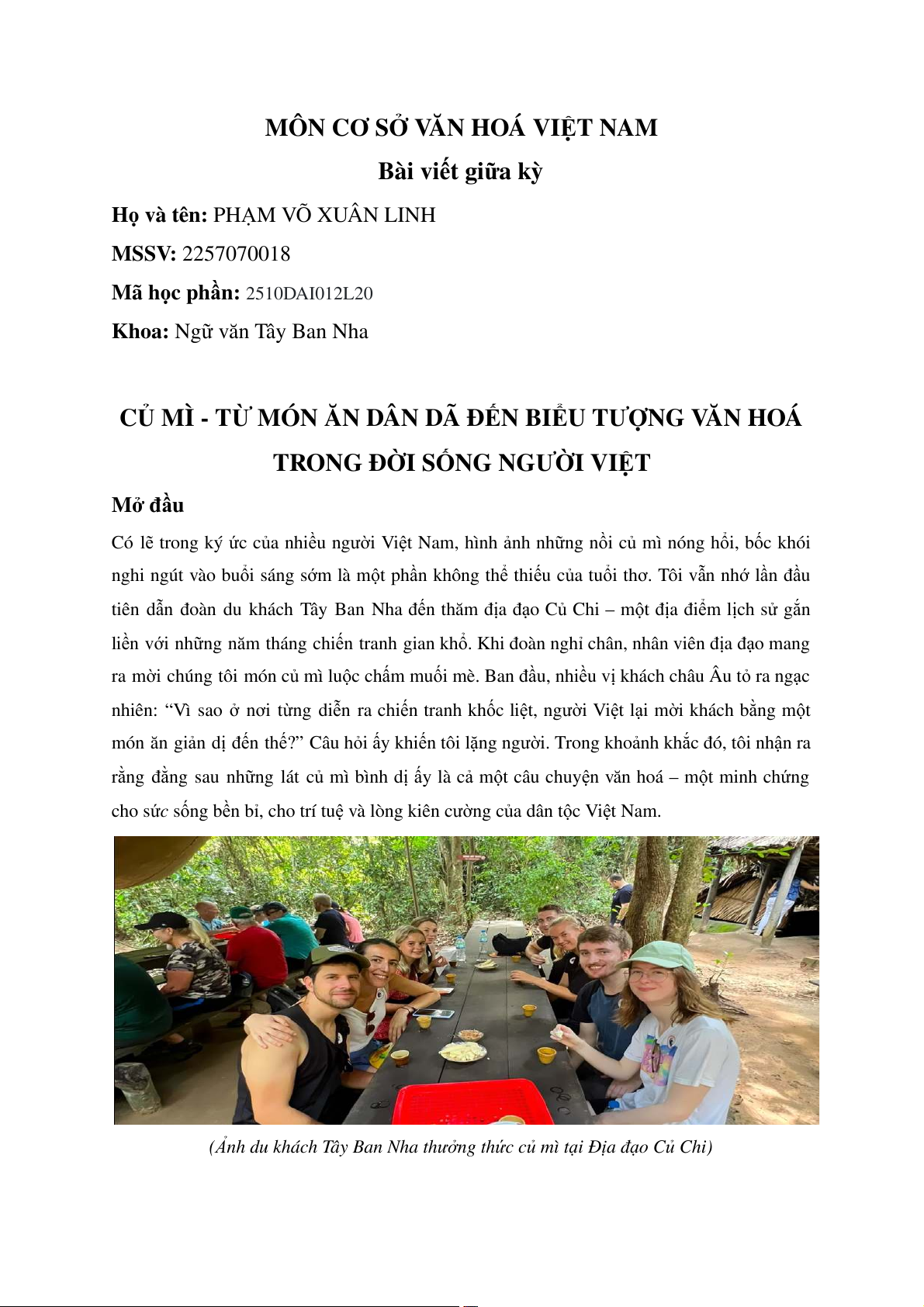 Họ và tên: PHẠM VÕ XUÂN LINH MSSV: 2257070018 Mã h c ọ phần: 2510DAI012L20 Khoa: Ngữ văn Tây Ban Nha