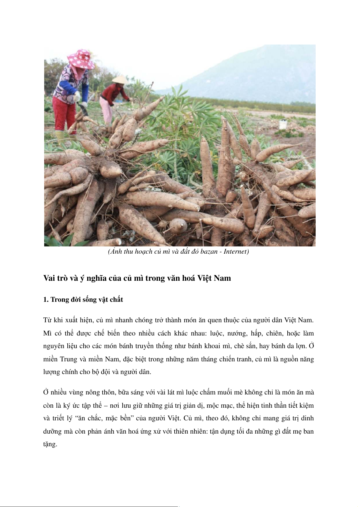 Vai trò và ý nghĩa của củ mì trong văn hoá Việt Nam 1. Trong đời sống v t ậ ch t ấ Từ khi xuất hiện, c