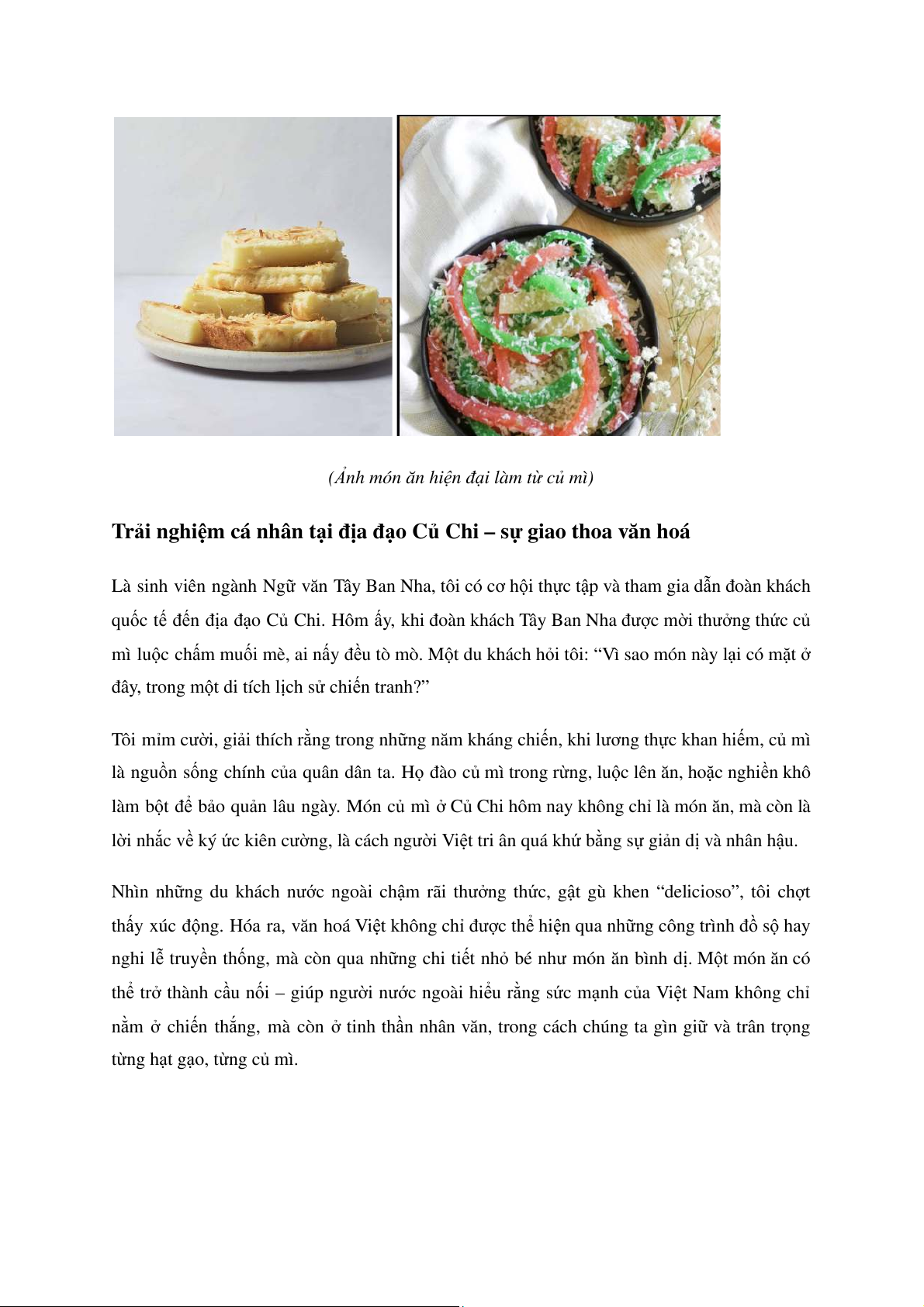 Trải nghiệm cá nhân tại địa đạo Củ Chi – sự giao thoa văn hoá Là sinh viên ngành Ng
