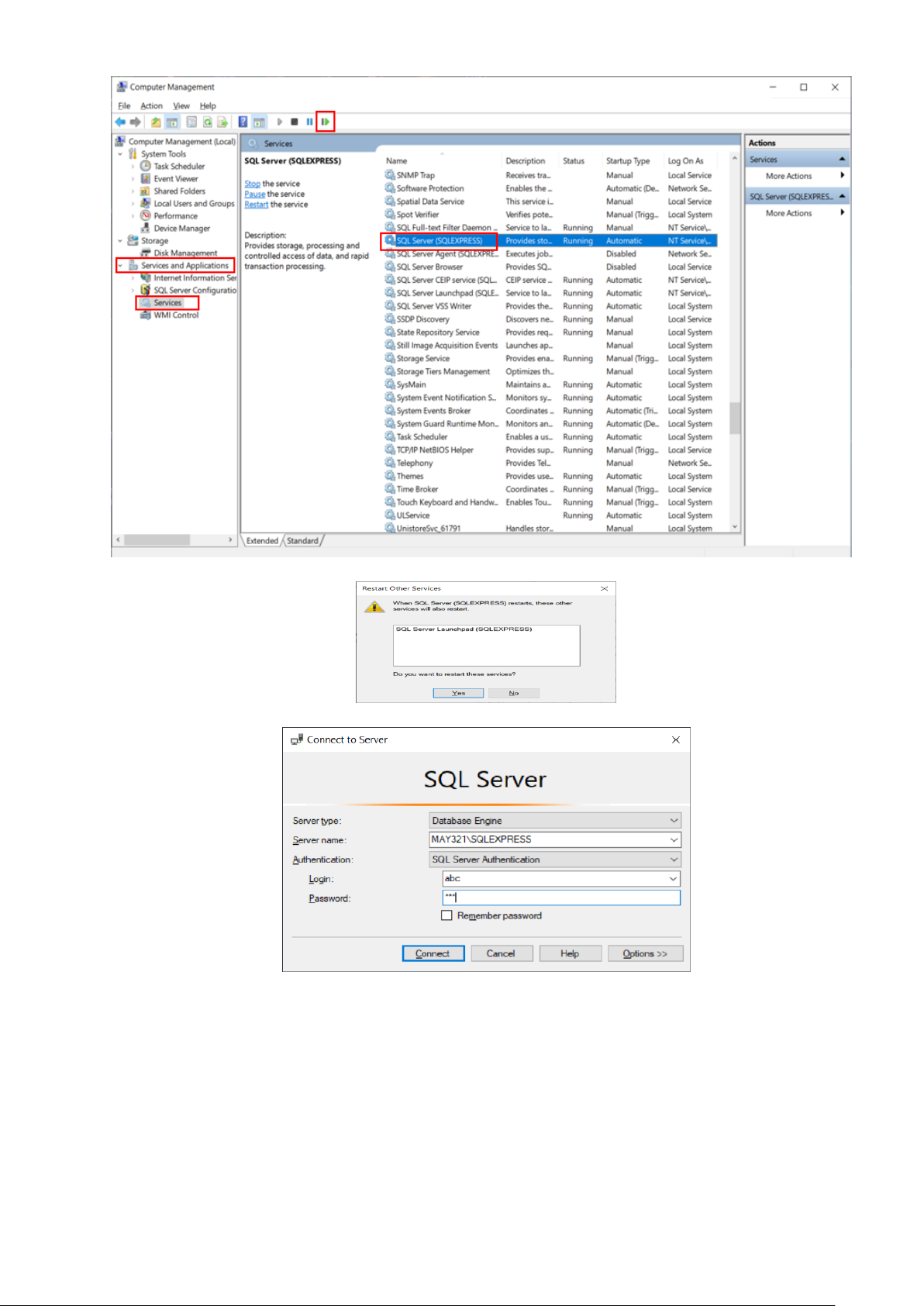 Tìm This PC, click chuột phải, Chọn thuộc tính Manage, Mở Services: Ấn S để tìm thấy SQL EXPRESS: 5
