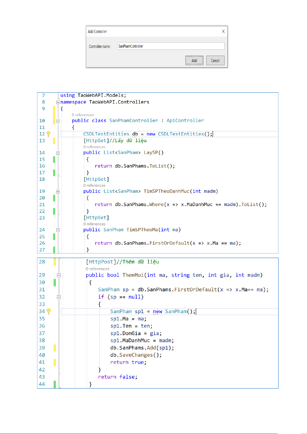 - Tương tự tạo Controller cho bảng DanhMuc B6. Tạo các Web API 11 12