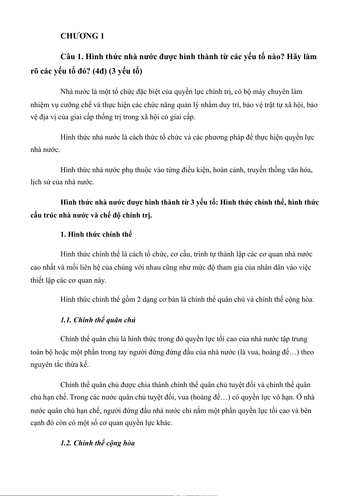 Câu 1. Hình thức nhà nước được hình thành từ các yếu tố nào? Hãy làm