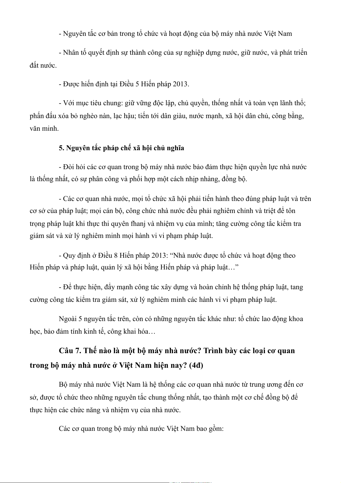 Câu 7. Thế nào là một bộ máy nhà nước? Trình bày các loại cơ quan
