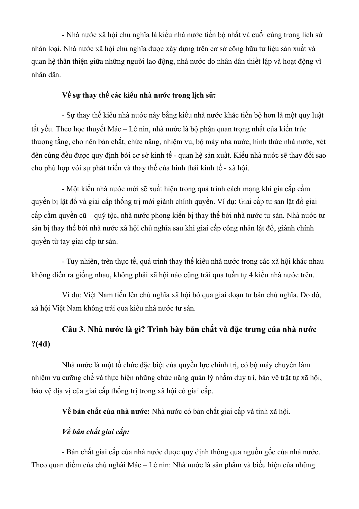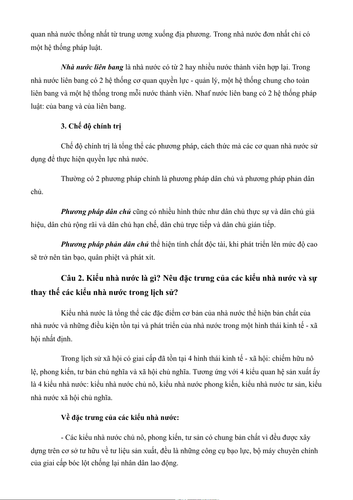 Câu 2. Kiểu nhà nước là gì? Nêu đặc trưng của các kiểu nhà nước và sự