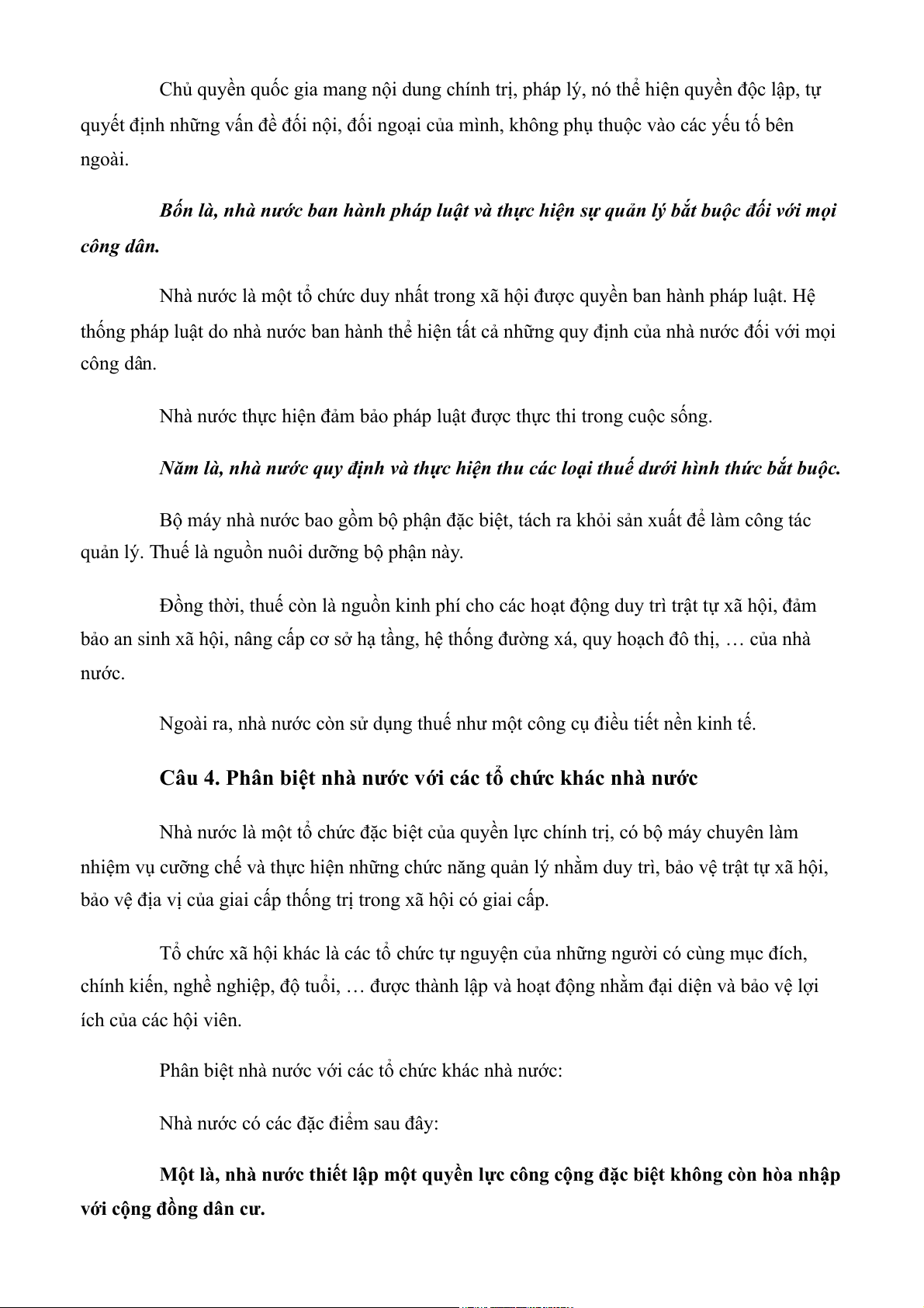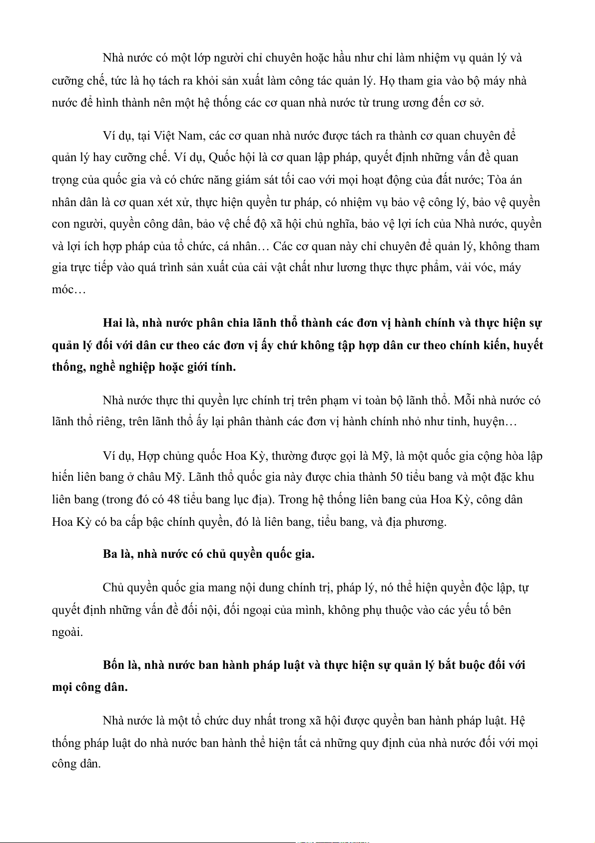 Câu 9. Trình bày đặc điểm cơ bản của nhà nước? (5 đặc điểm)