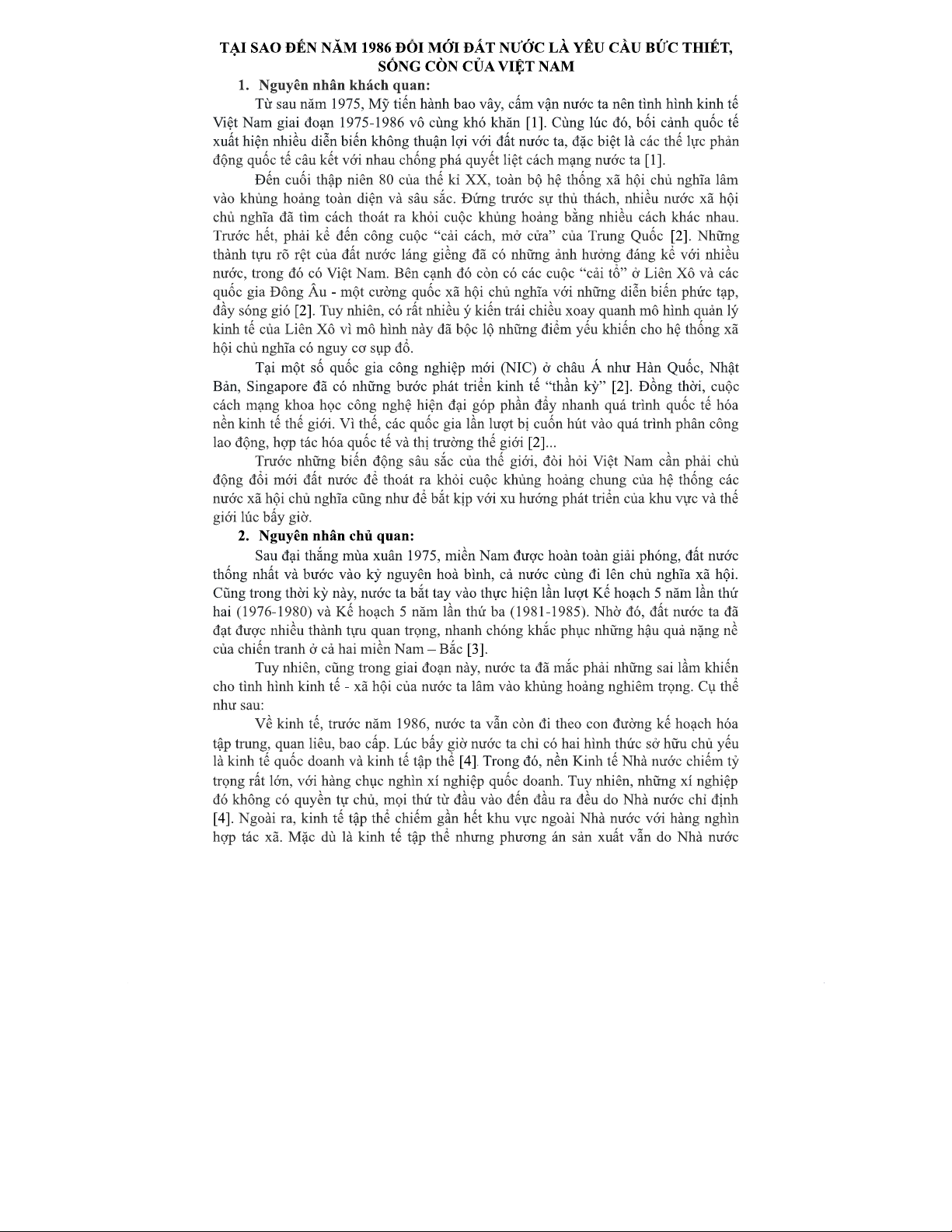 BẢN CHẤT VÀ TÍNH CẤP THIẾT CỦA ĐỔI MỚI ĐẤT NƯỚC 1986