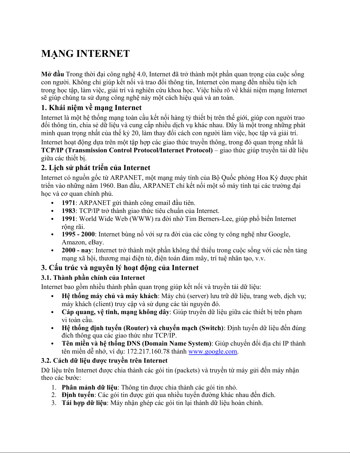 MẠNG INTERNET