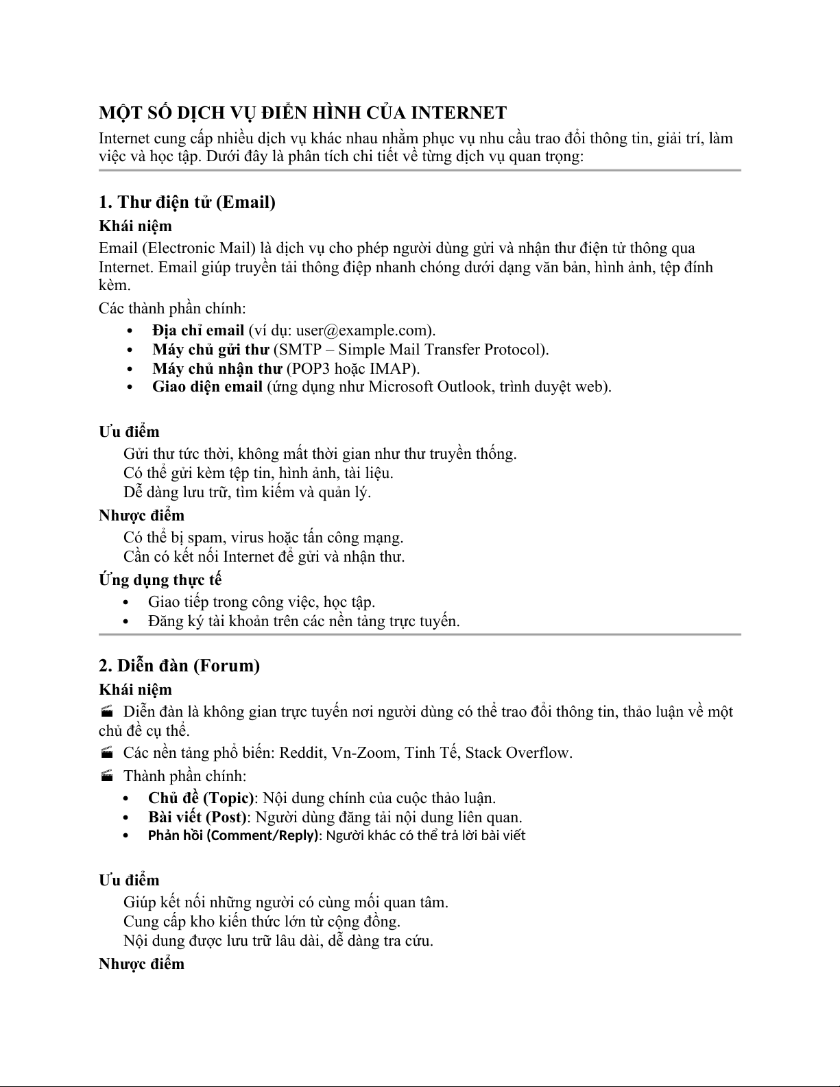 MỘT SỐ DỊCH VỤ ĐIỂN HÌNH CỦA INTERNET